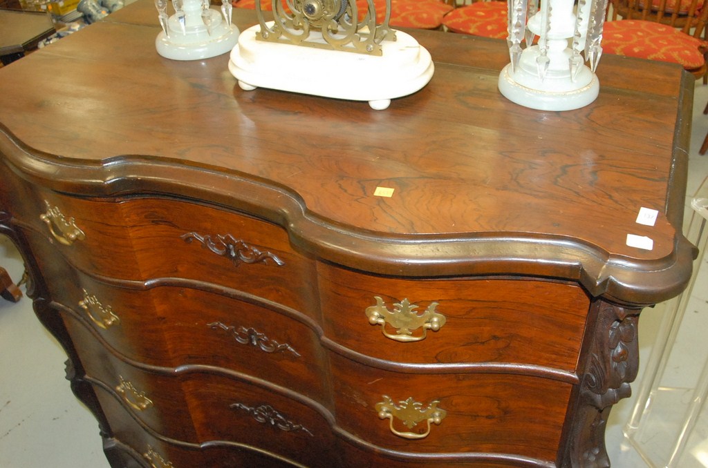 Rosewood Victorian serpentine front chest, ht. 39, wd. 43.