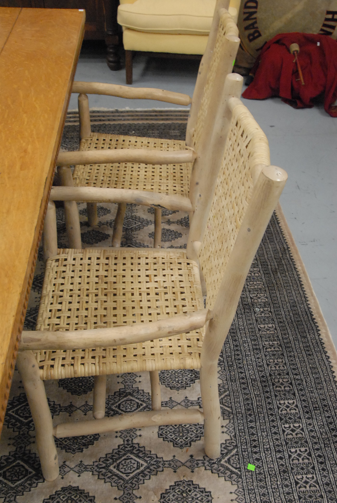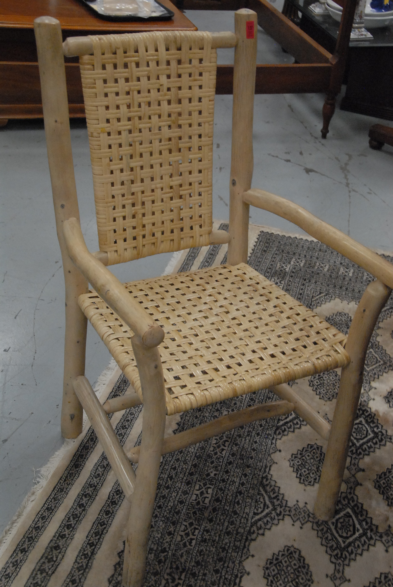 Set of six Adirondack style armchairs with woven seats and back signed Flat Rock.