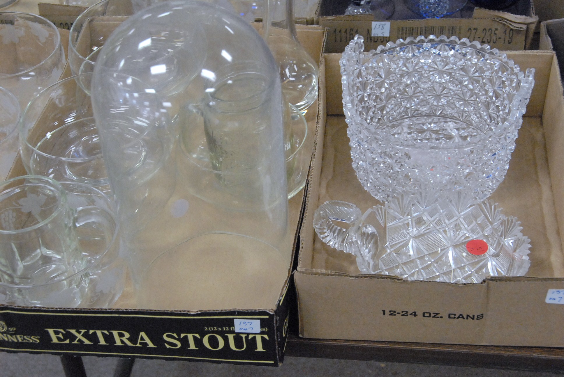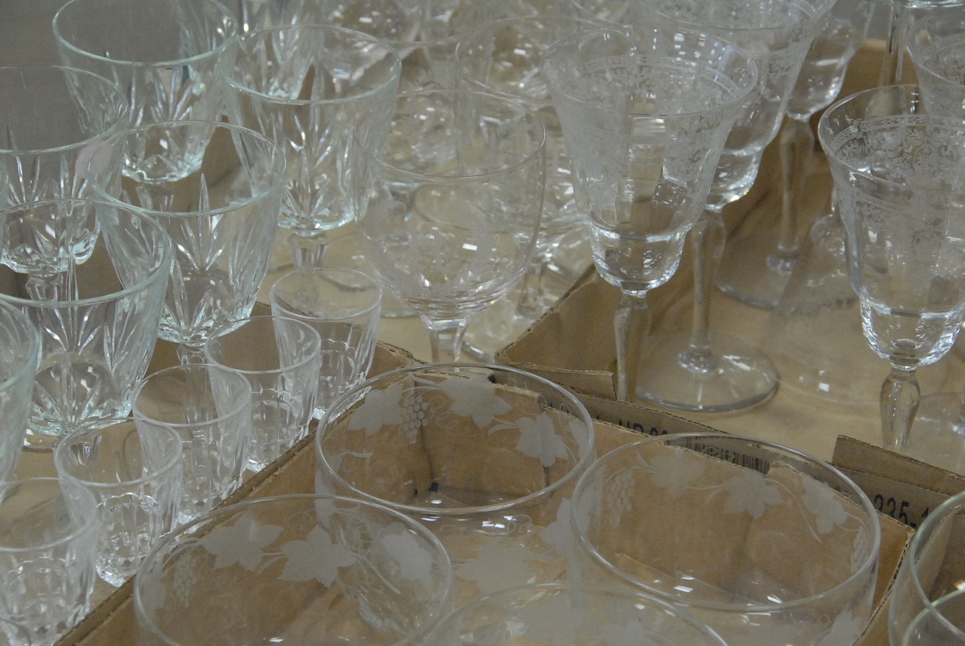 Seven box lots of crystal and cut glass including vases, decanter, crystal stemware , ice bucket, etc.