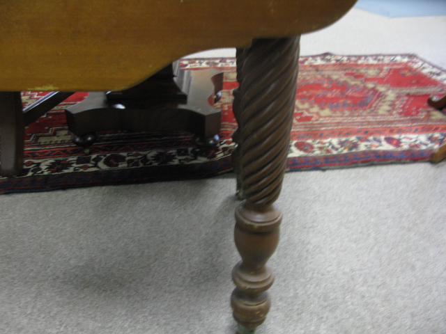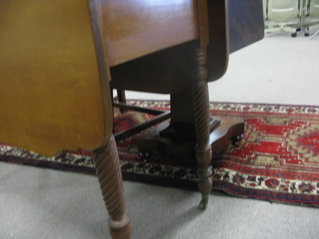 Sheraton cherry mahogany drop leaf table, circa 1830.