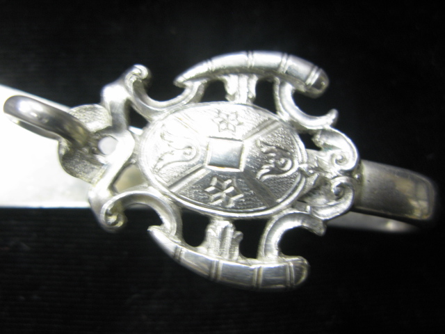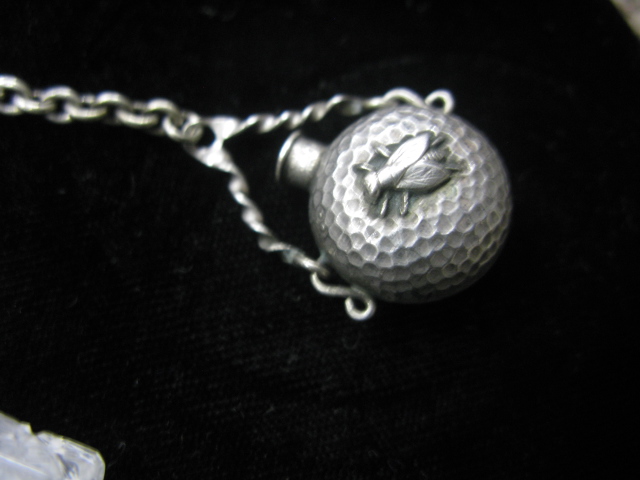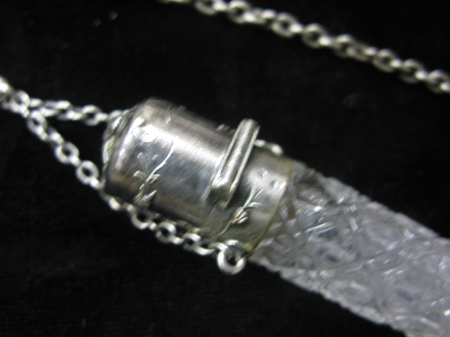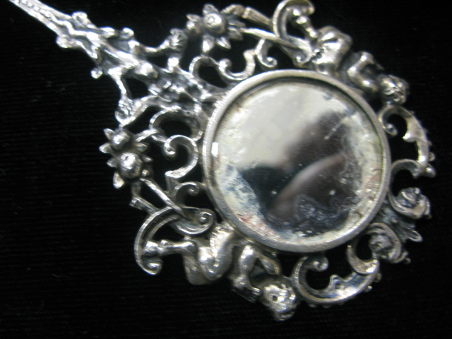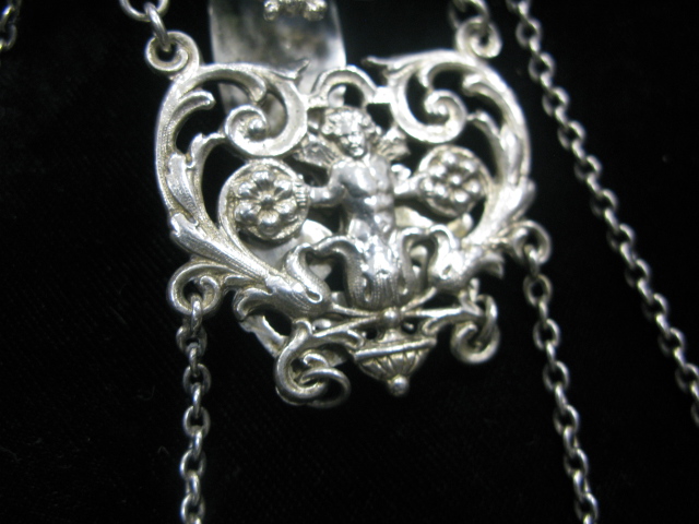 Silver chatelaine with perfume scent bottle mounted with multi metal, mirror and two belt hooks