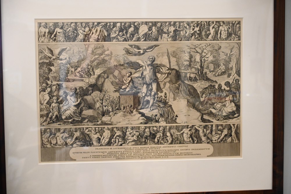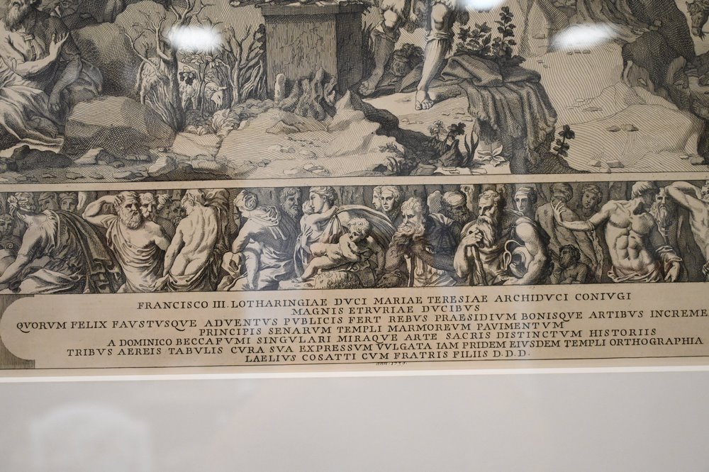 Lot 137: Two After Domenico Beccafumi (Italian, 1486 – 1551), engravings on paper, circa 1700s or later, both housed in matching frames, sight size 19 1/2″ x 28 1/2″.