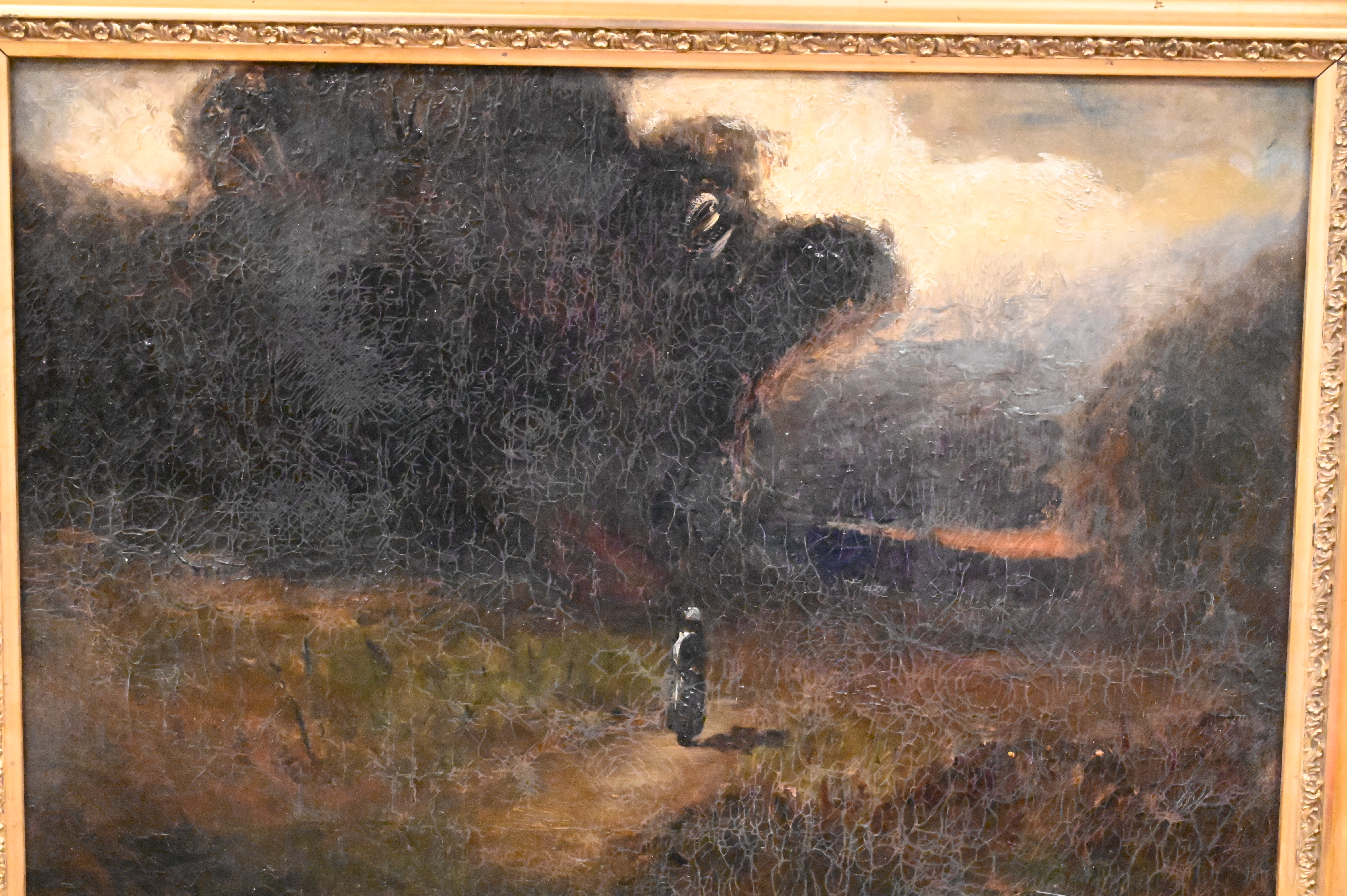 Condition: relined, restored, heavy craquelure throughout, inpainting, heavy varnish
