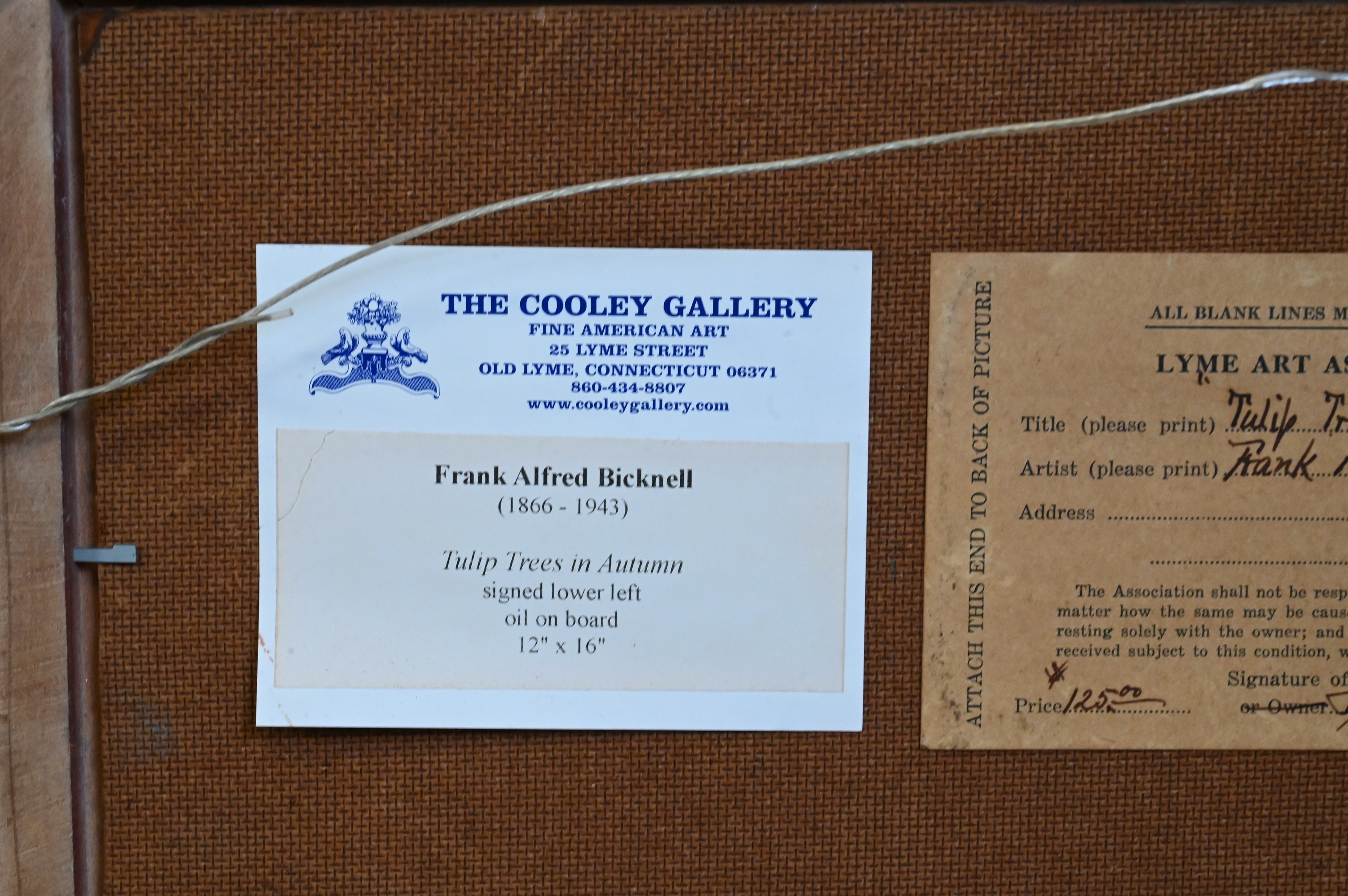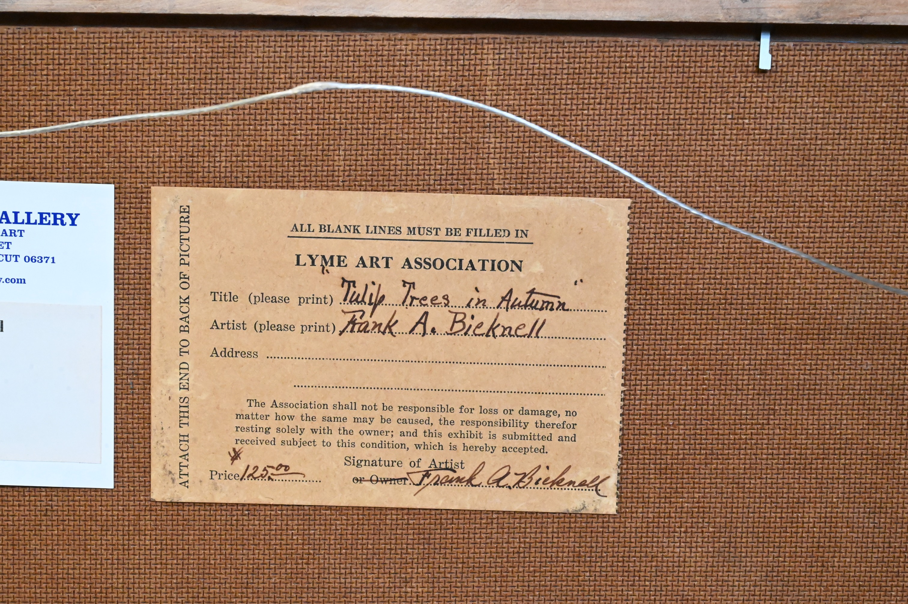 Lyme Art Association exhibition label verso