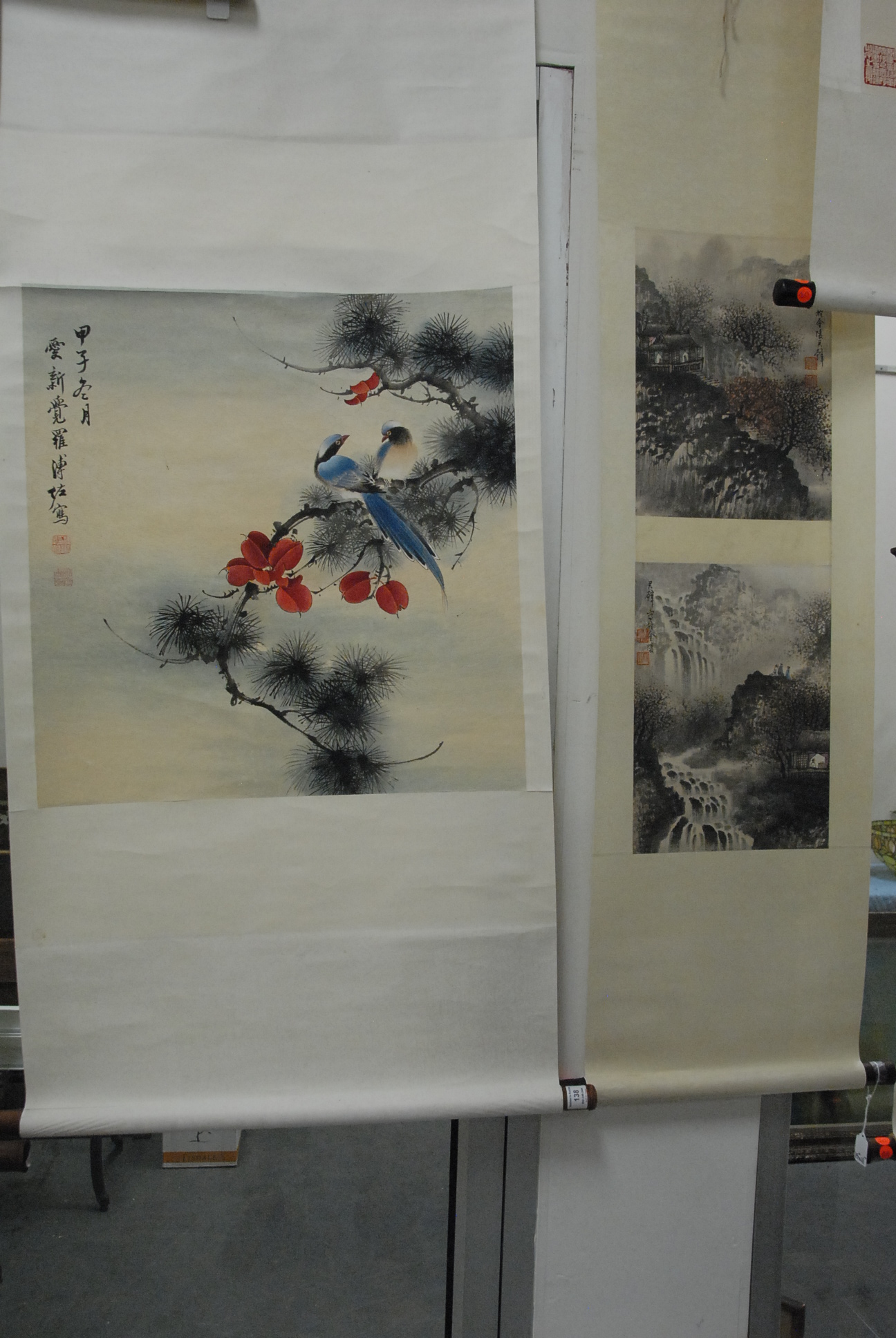 Lot 138: Group of four oriental scrolls to include a