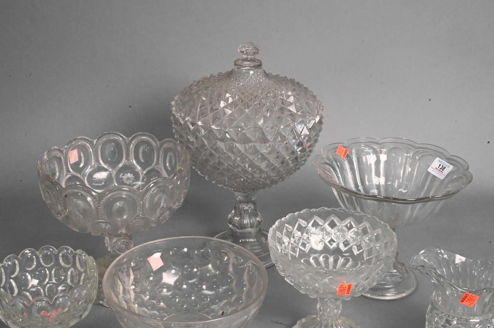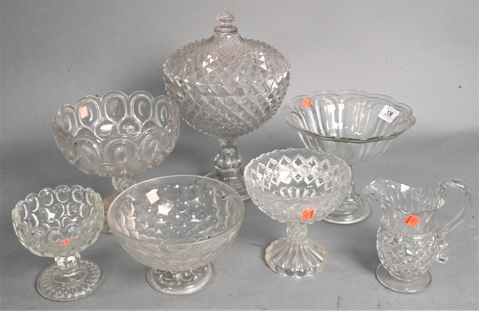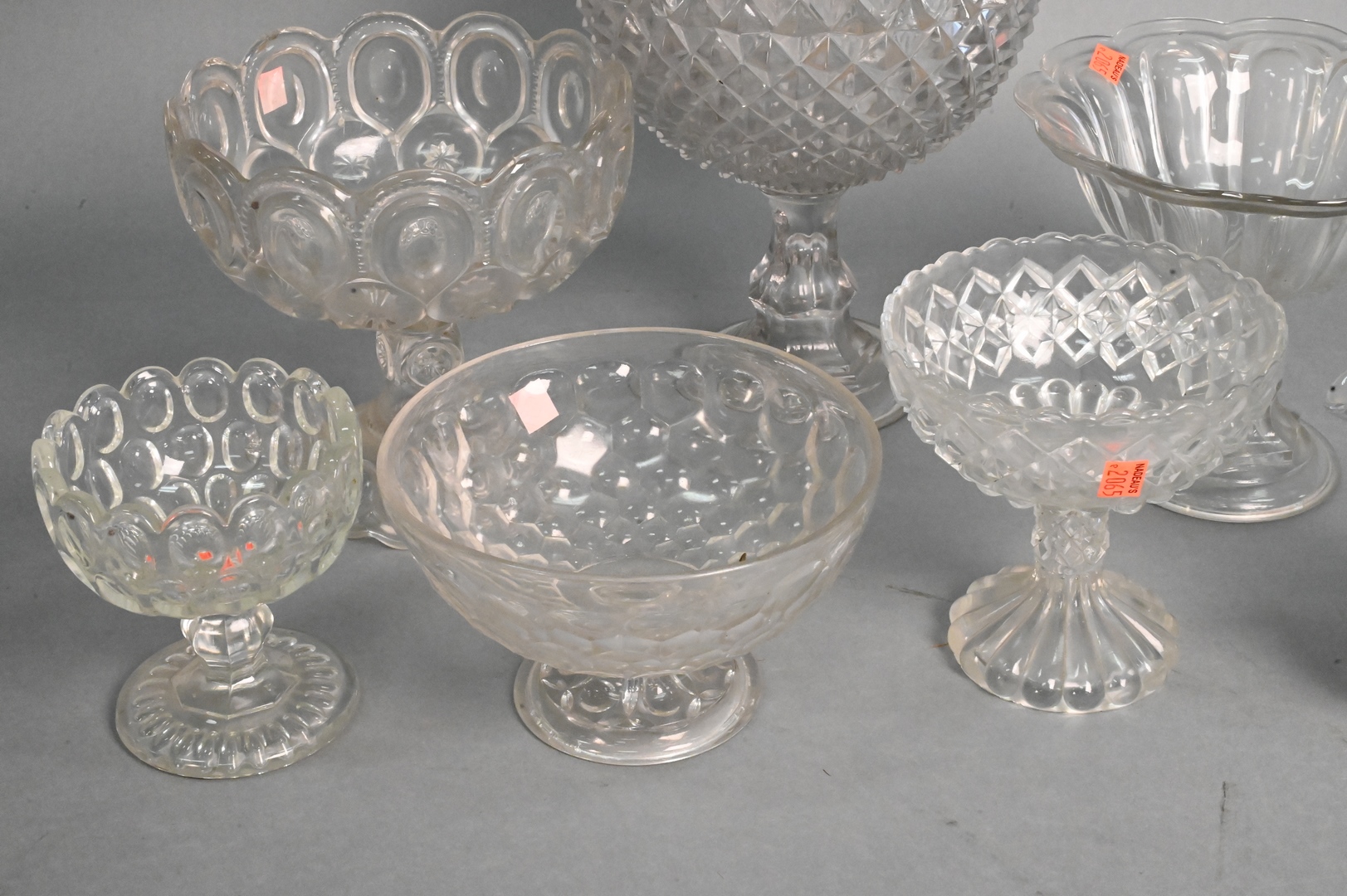 Nine Piece Lot of Mostly Sandwich Glass, to include compotes, etc., tallest 15 inches.