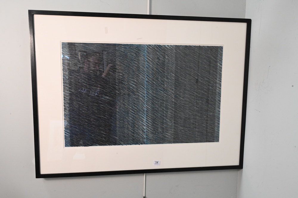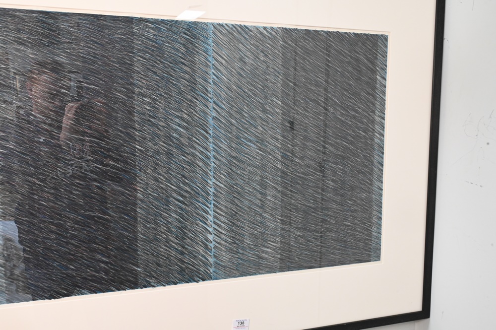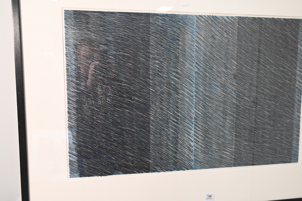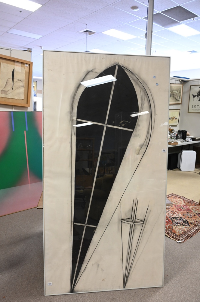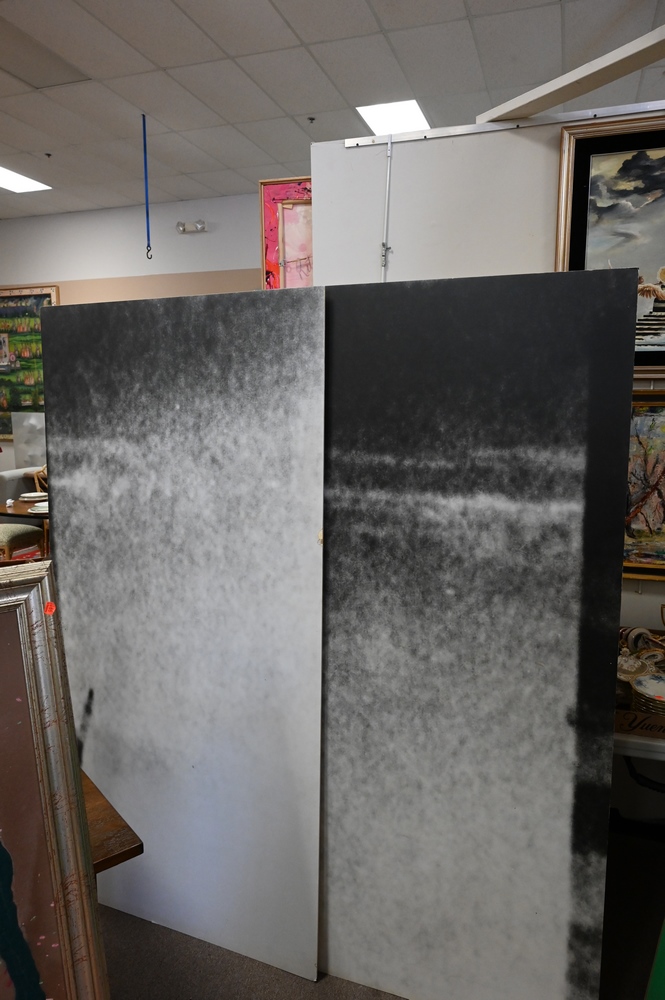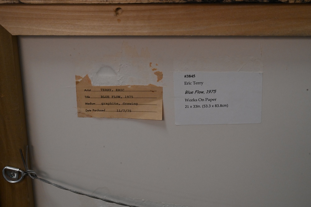 Lot 138: Two Piece Lot, to include Eric Terry, Blue Flow 1975, graphite drawing, partial gallery label on verso, 21″ x 33″; along with Donald Newman (1955), untitled, 1980, photograph and charcoal on paper (detaching from backing), 72″ x 72″.