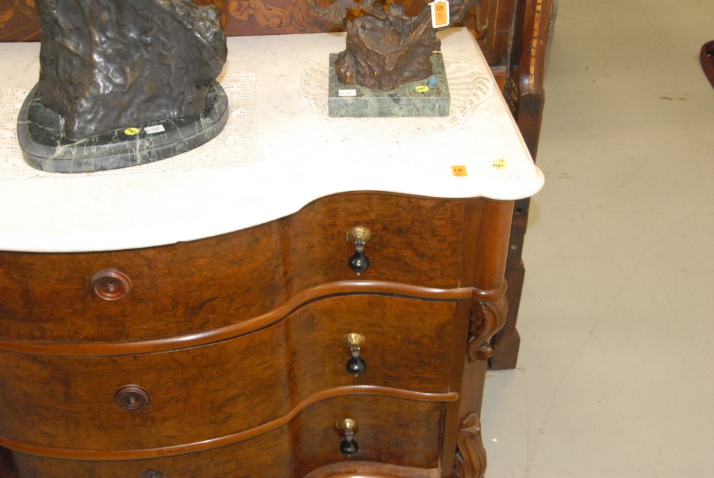 Victorian Burlwood marble top chest.