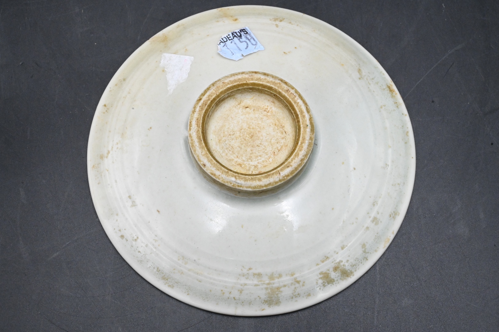 Chinese Footed Dish, possibly Song Dynasty, height 1 inch, diameter 5 1/2 inches.