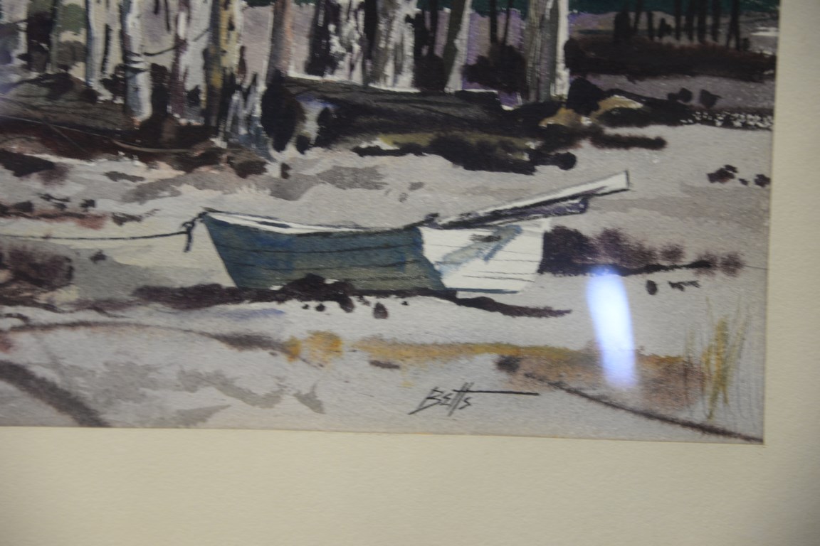 Lot 139: Edward Betts 1920-2008 watercolor Tides Out, Maine Shore Inlet signed lower right Betts, sight size 13 x 20.