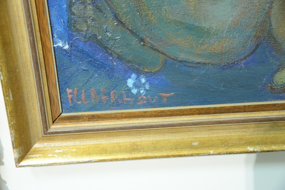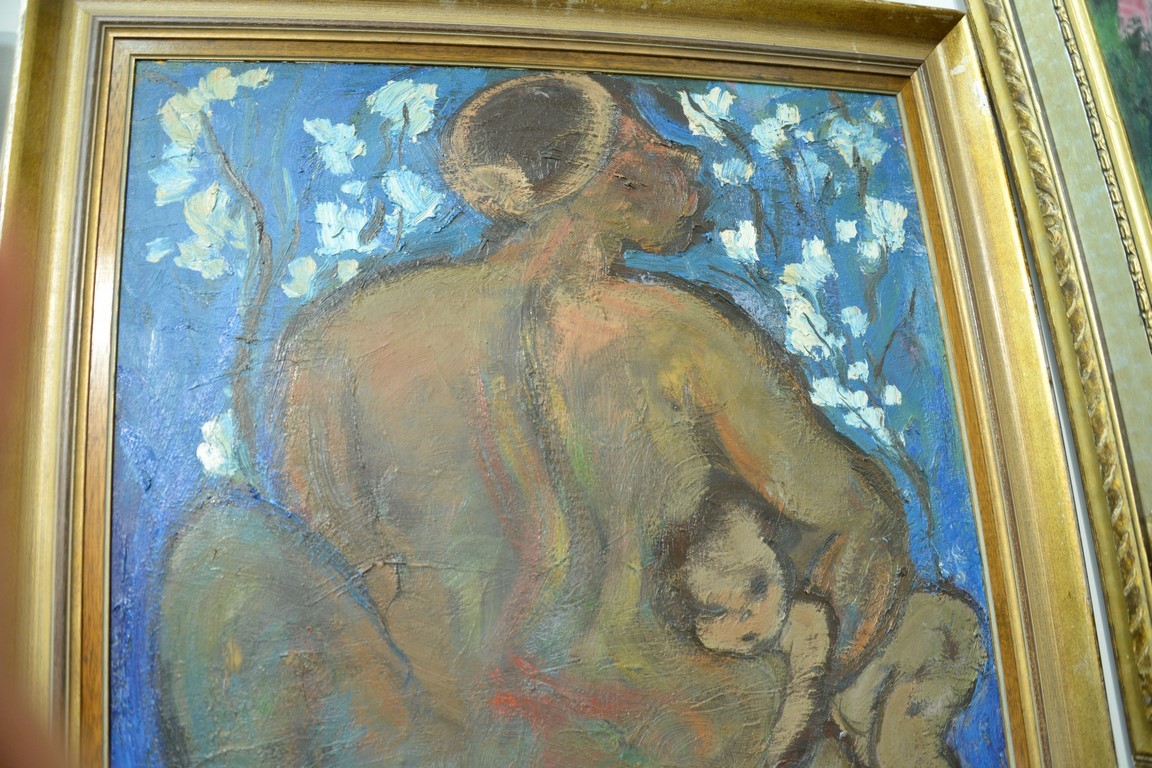 Five piece lot including an oak carved armchair, two rockers, an empire chair, and an iron plant stand.