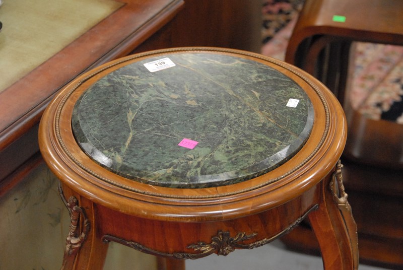 French style marble top stand, ht. 30 in. dia. 16 in.