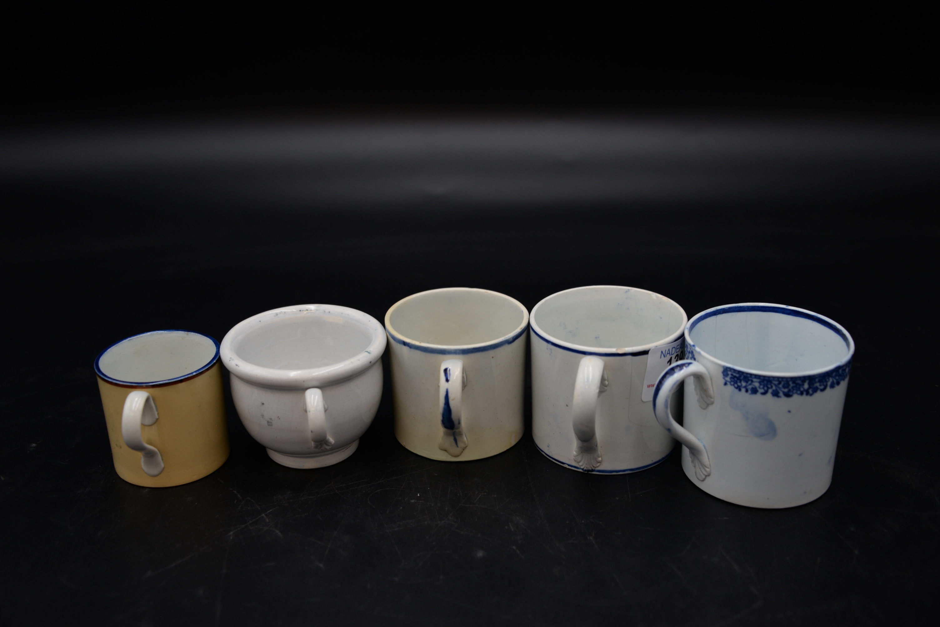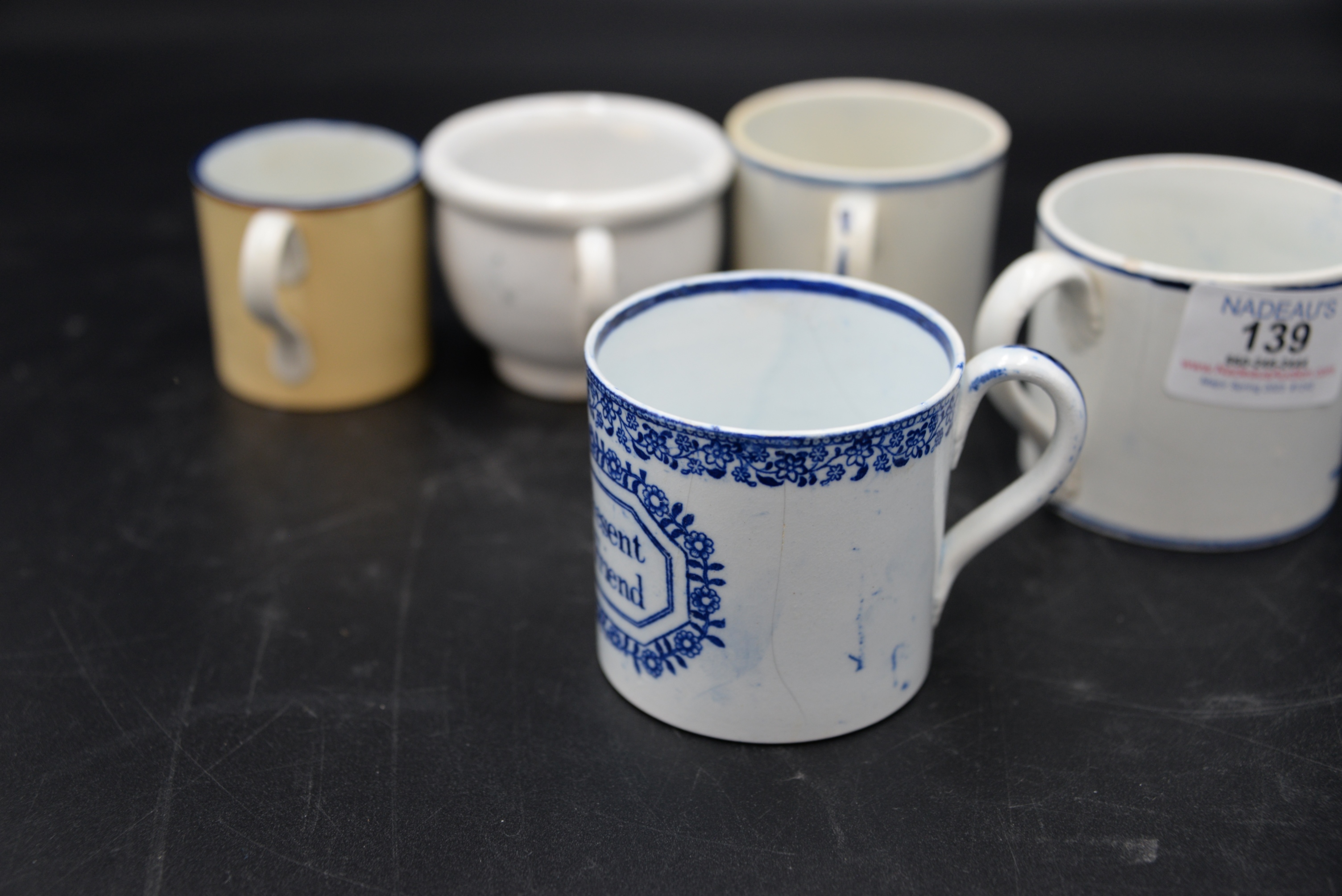 Lot 139: Group of Five Present or Gift Children’s’ Staffordshire Mugs