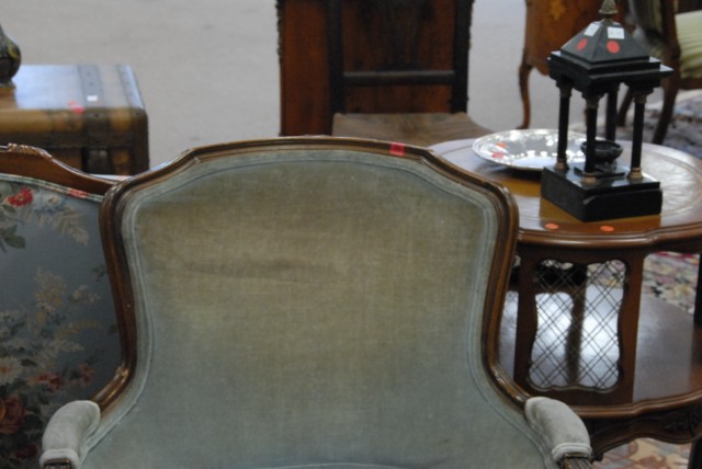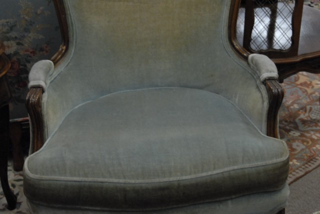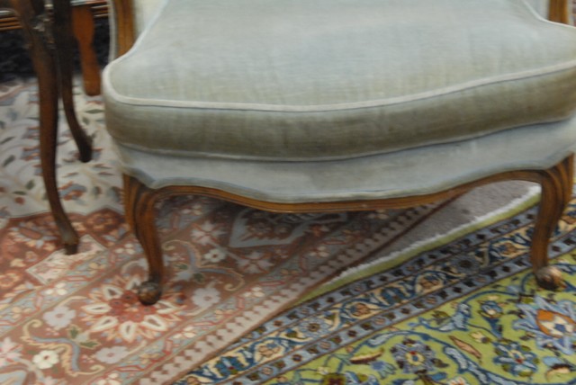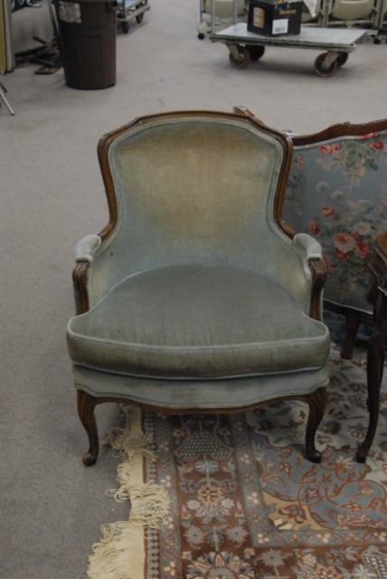 Pair of French style upholstered armchairs.