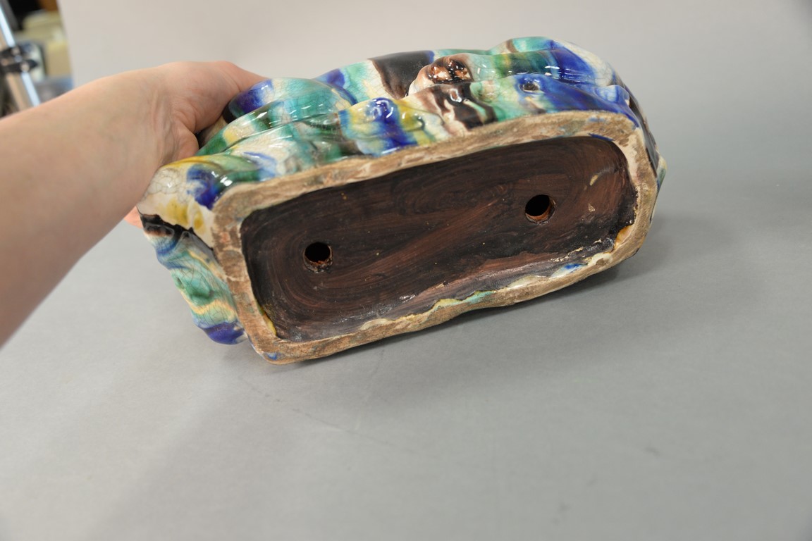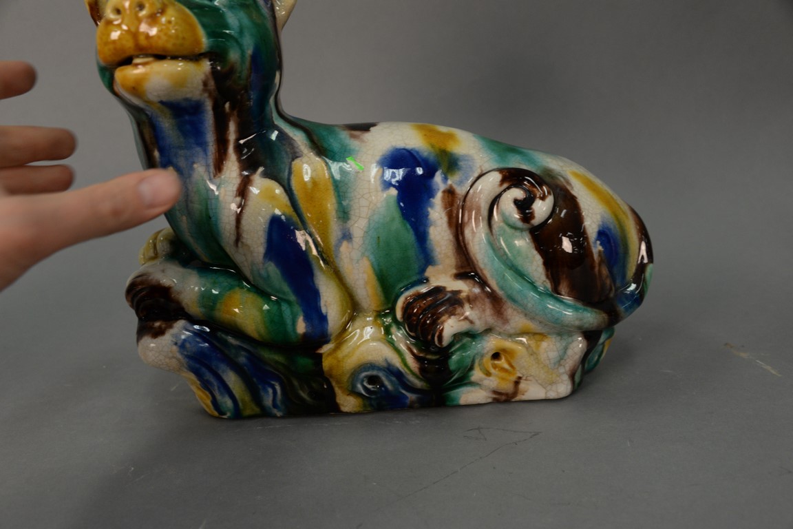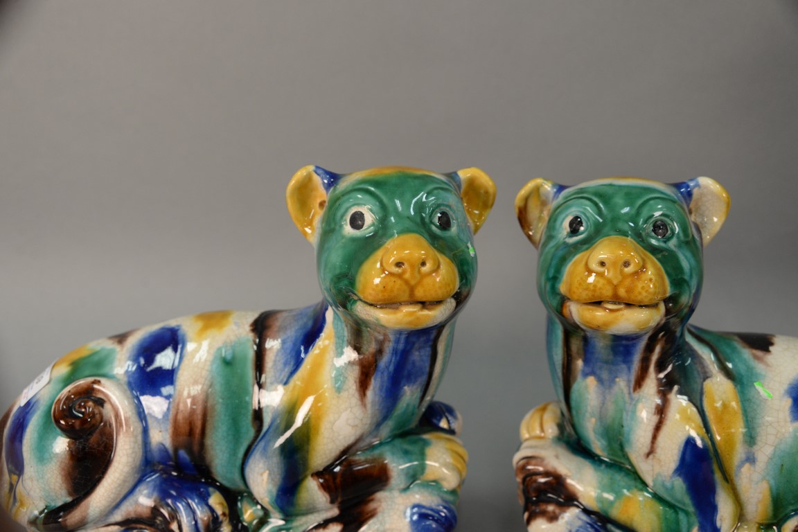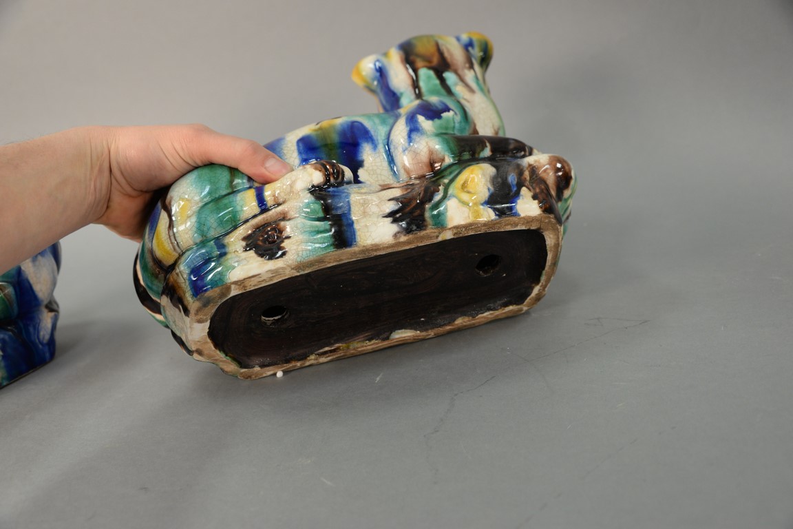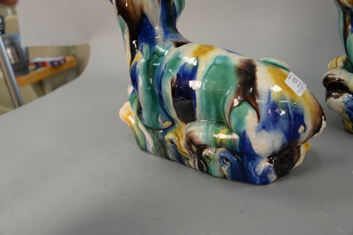 Pair of glazed recumbent dog figures. ht. 10in., lg. 12in.