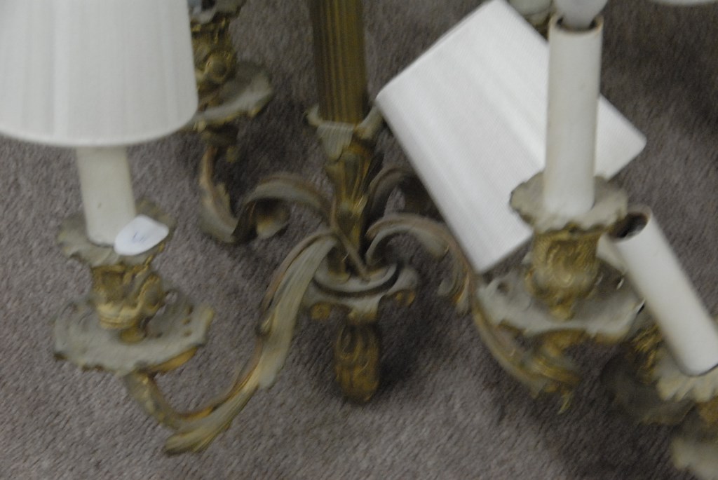 Pair of Louis XV four light hanging lamps with small shades.
