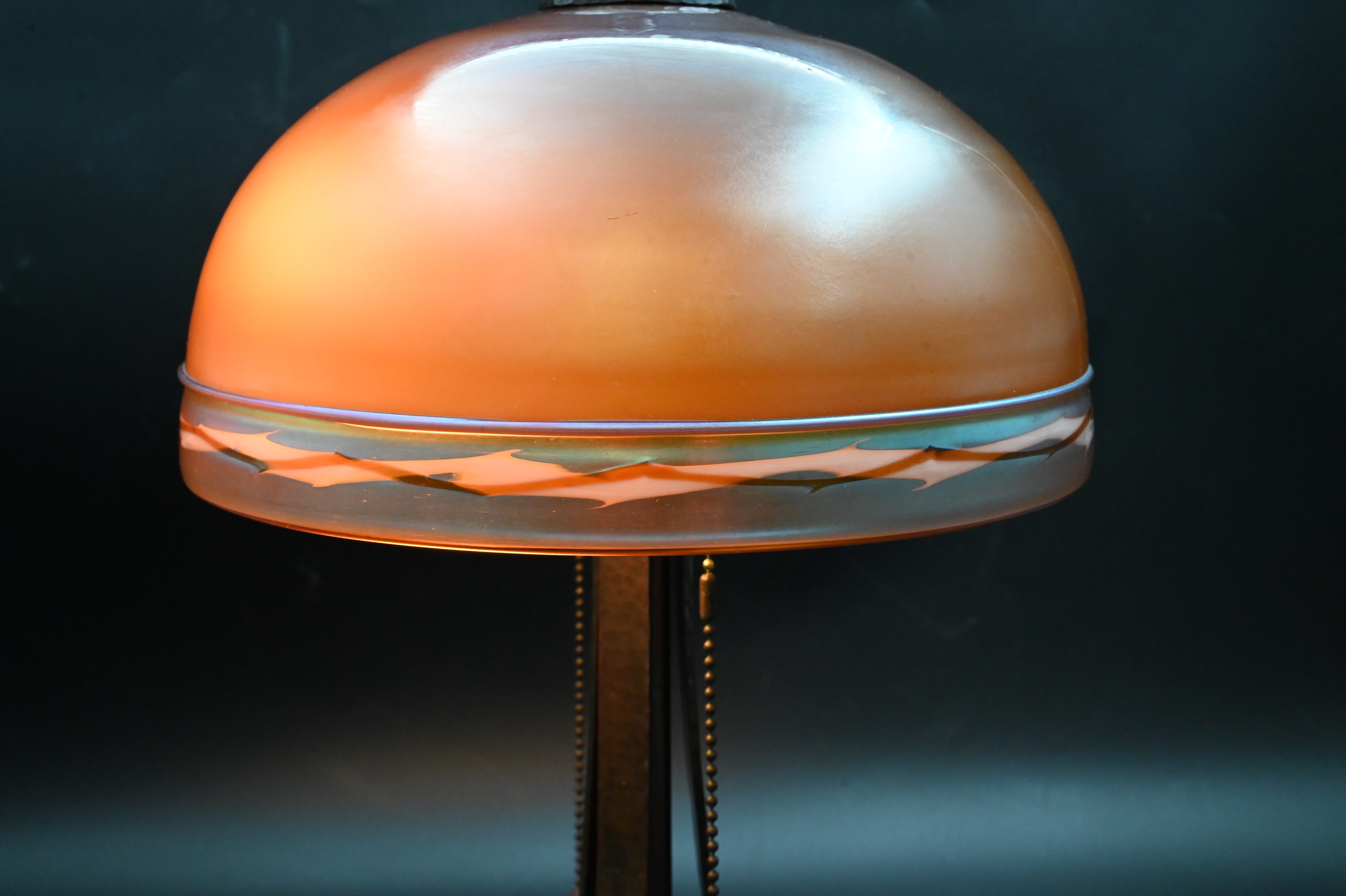 Lot 139: Roycroft Table Lamp having Aurene Shade Executed by Steuben Glass Company