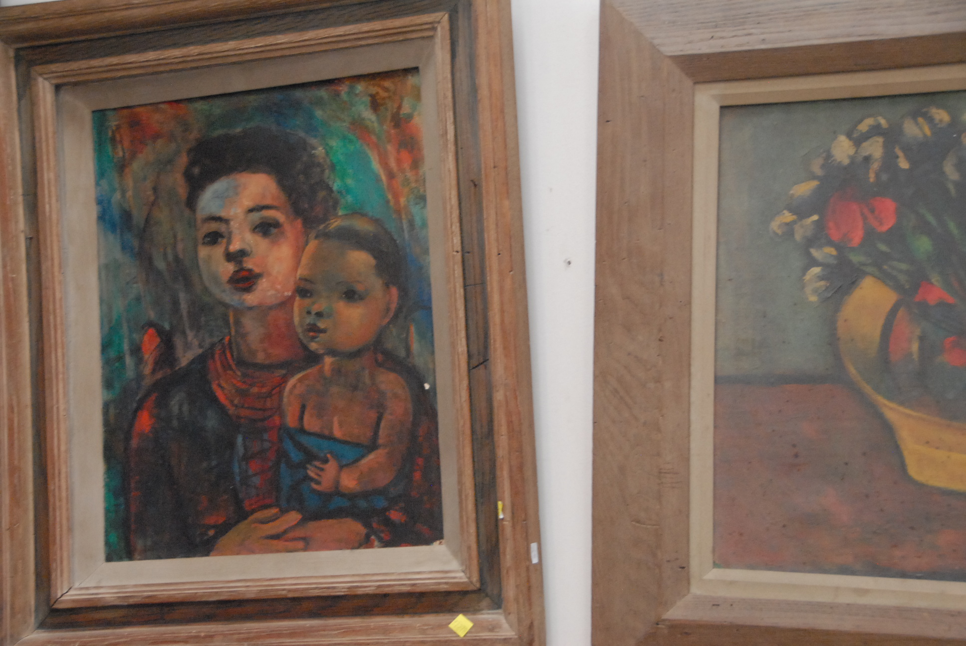 Lot 139: Six framed oil paintings including one still life signed Hellman, four signed indistinctly and one oil on board signed Jeptha Madiso…