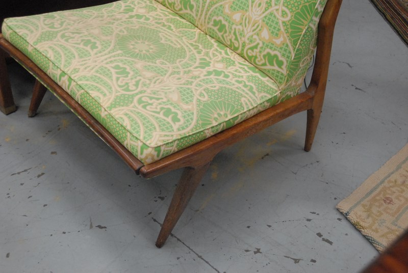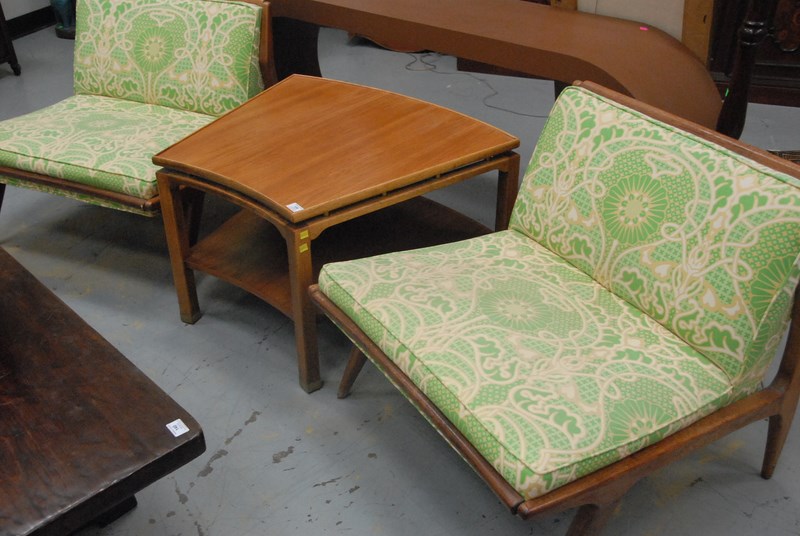 Lot 139: Three piece lot to include Sligh Furniture Company table and pair of curved modern lounge chairs attributed to Carlo De Carli, chair…