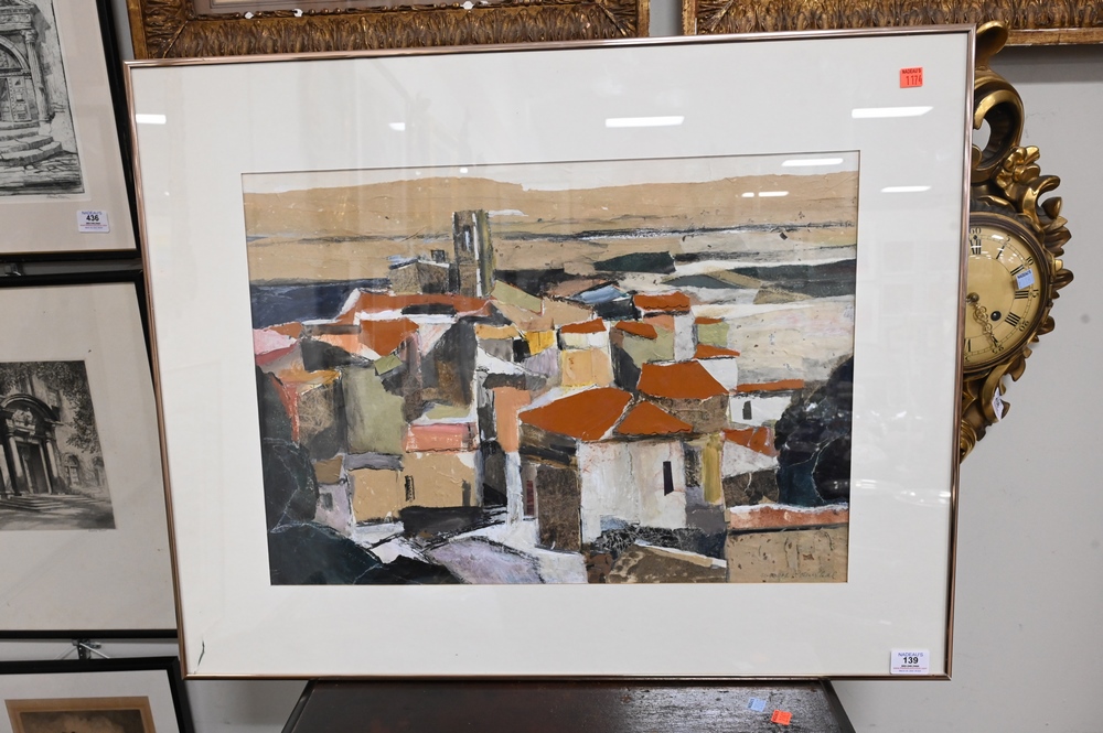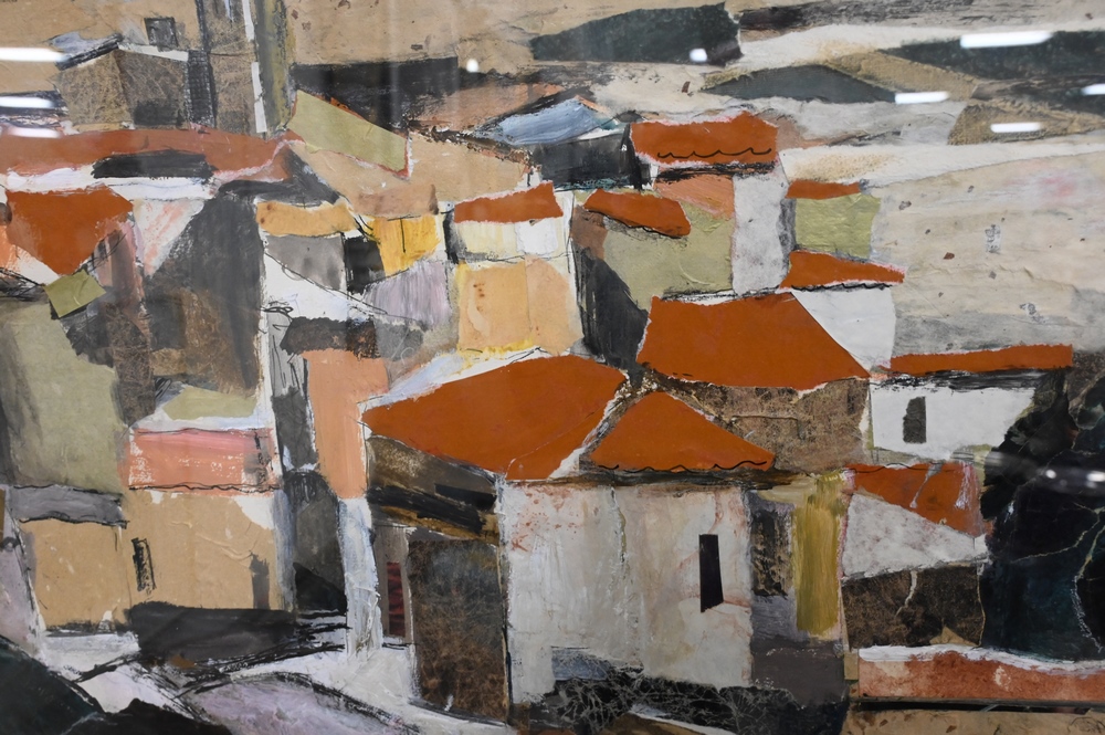 Lot 139: Two Framed Pieces, to include Margos Rosenthal, “St. Paul De Vence” collage, pencil signed, 16 1/2″ x 23″; along with Joan landscape…