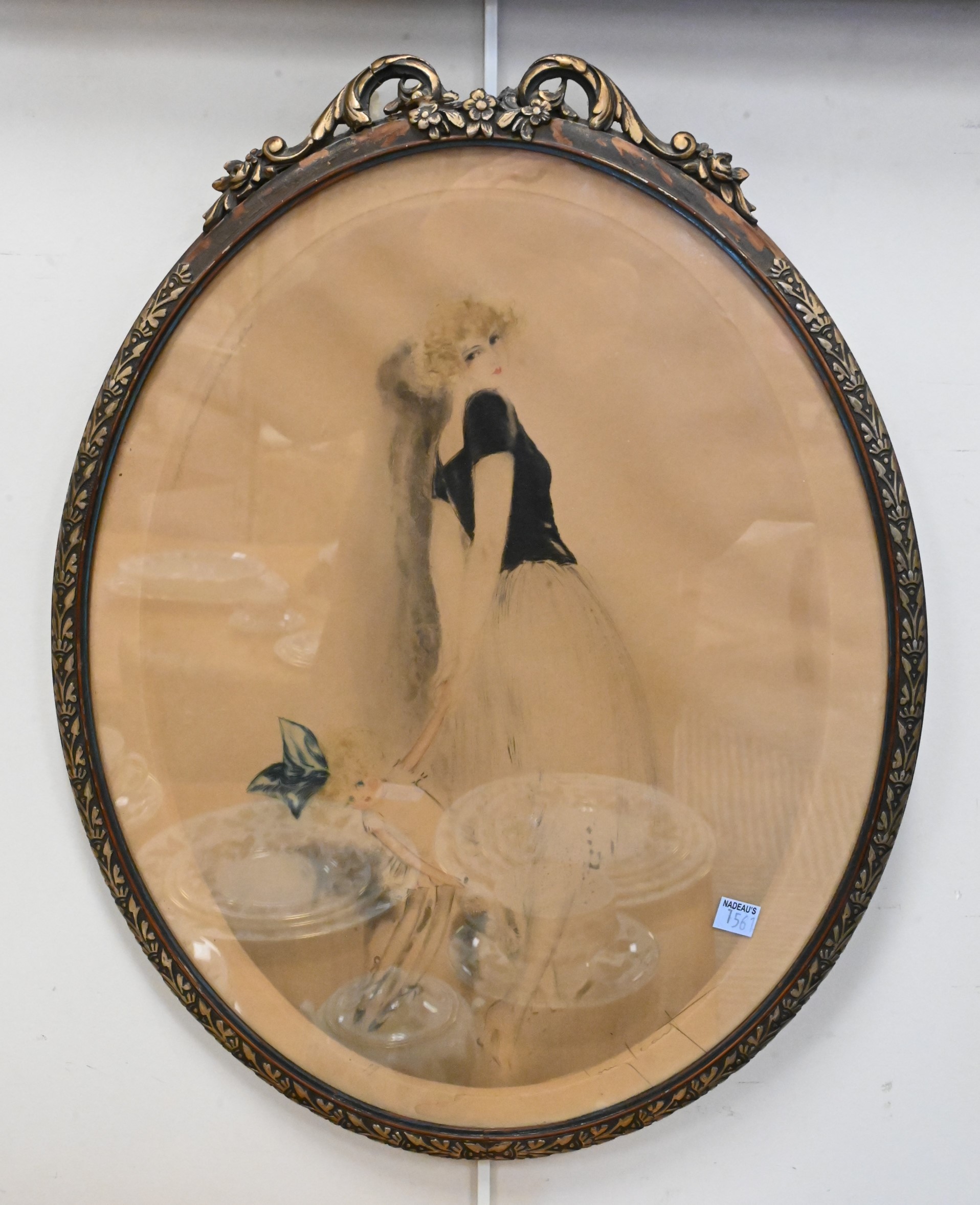 Two Louis Icart Etchings, to include three beauties with a cat and yarn ball, plate 17″ x 21″, along with a girl with her doll, plate size 17 3/4″ x 13″, pencil signed Louis Icart.