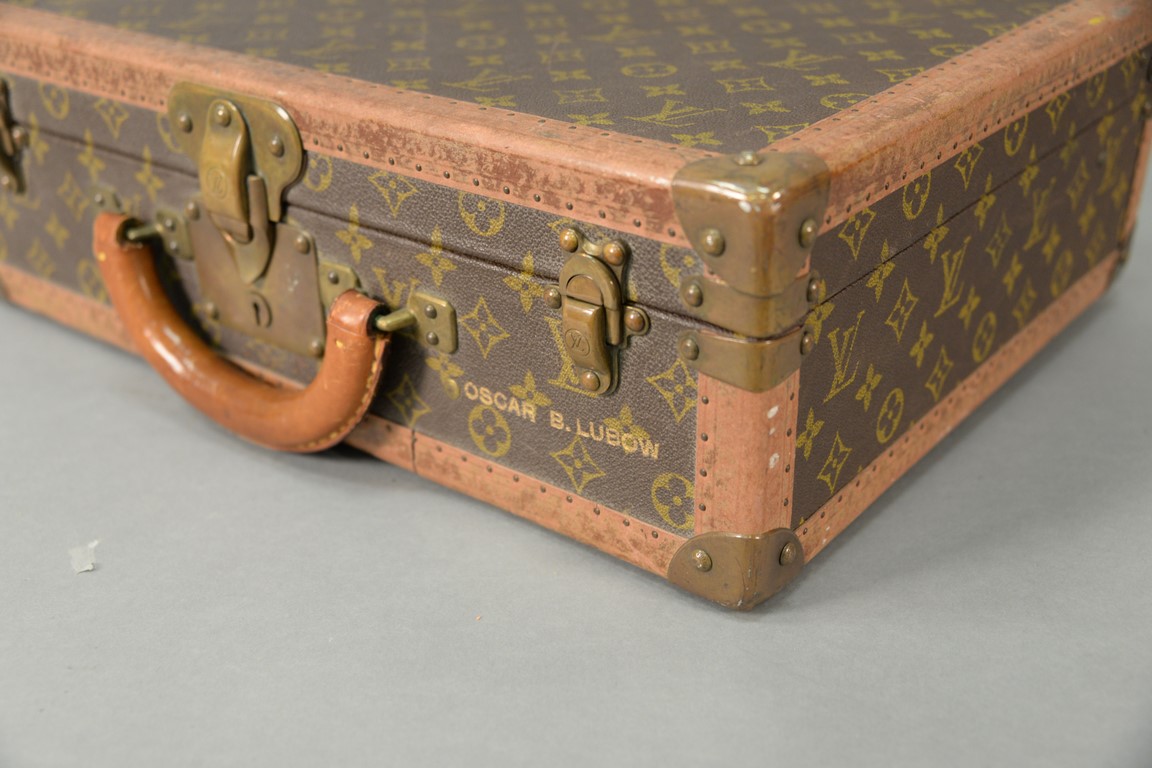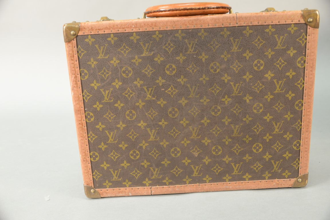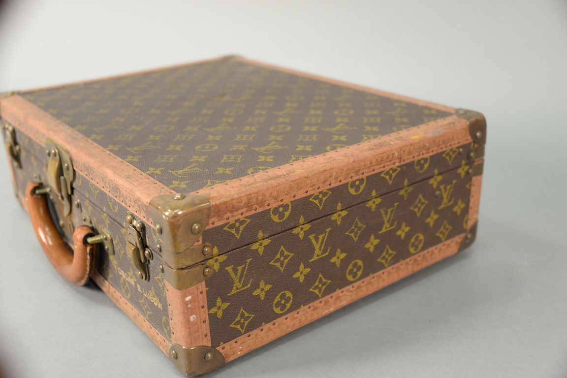 Lot 139: Vintage Louis Vuitton suitcase #871355, purchased from Crouch & Fitzgerald N.Y. one side with dent 13 1/2 x 17 3/4 x 5 3/4…