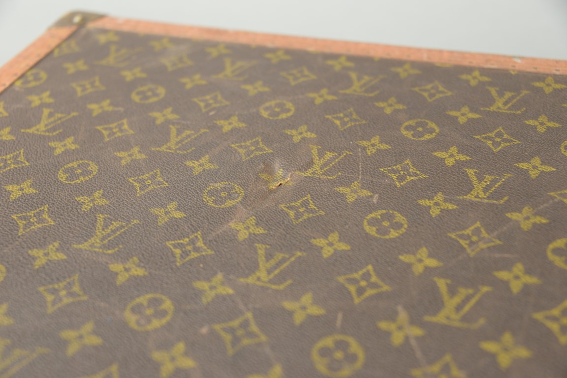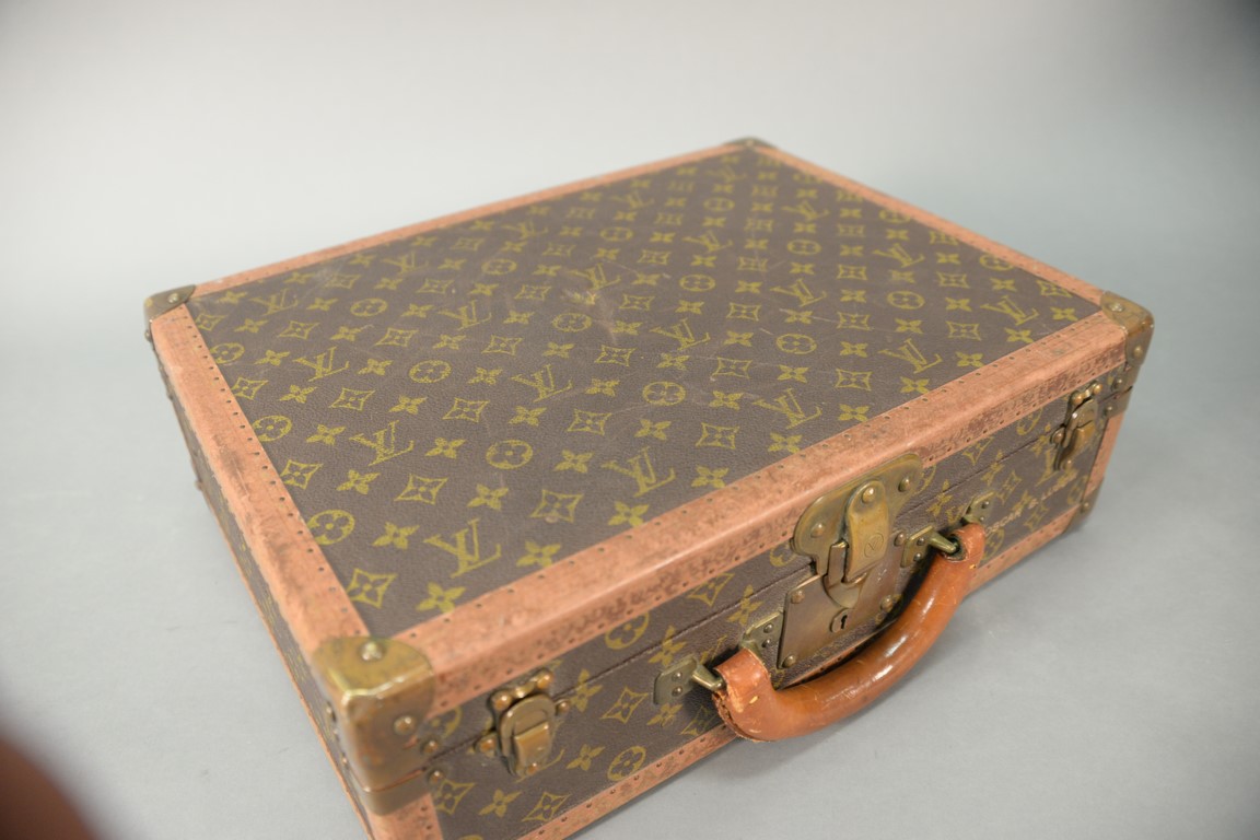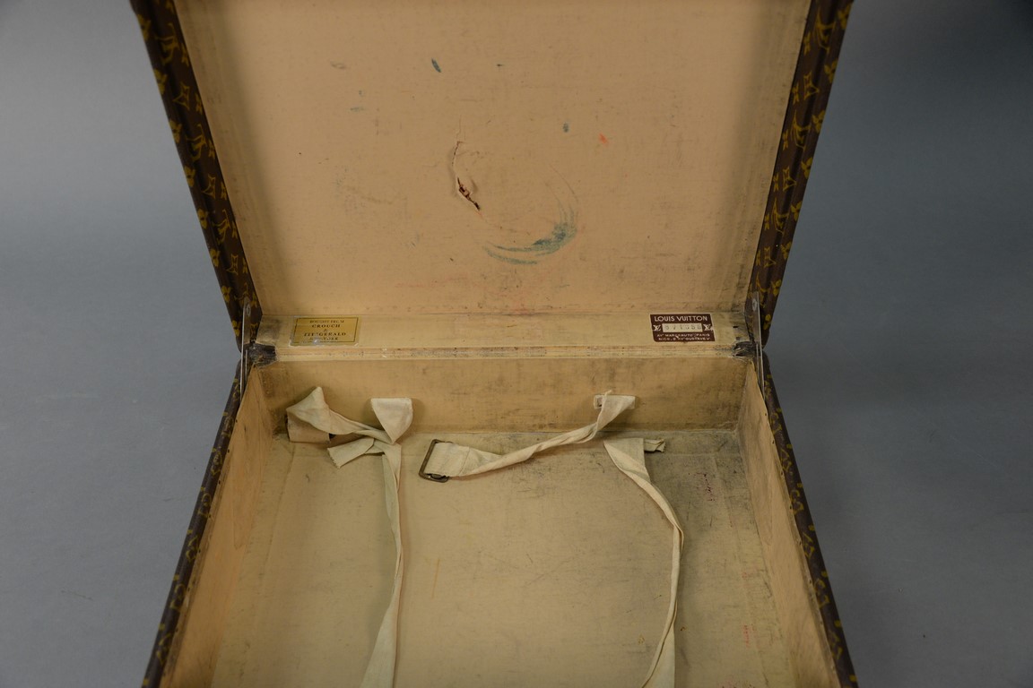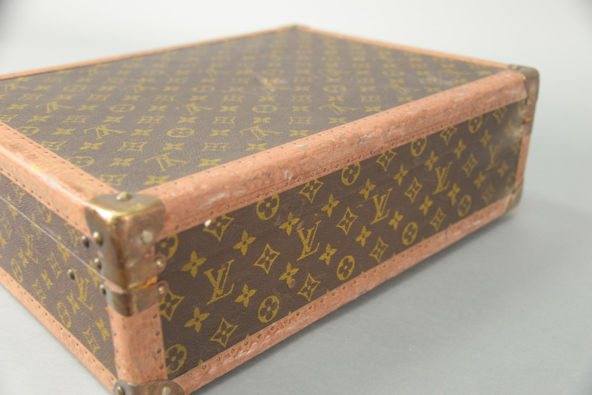 Lot 139: Vintage Louis Vuitton suitcase #871355, purchased from Crouch & Fitzgerald N.Y. one side with dent 13 1/2 x 17 3/4 x 5 3/4…