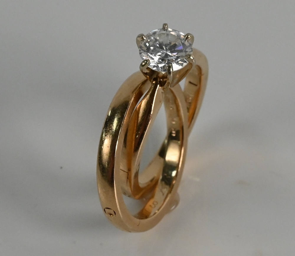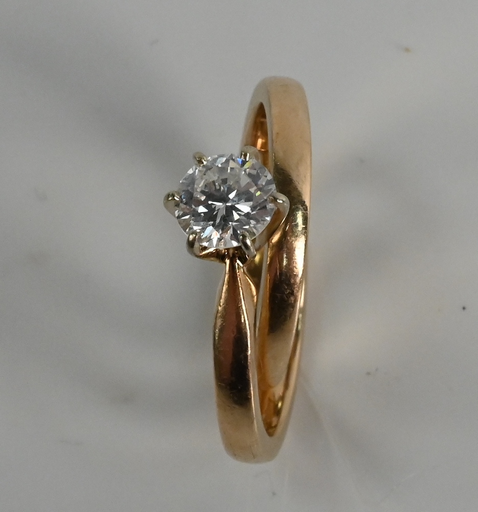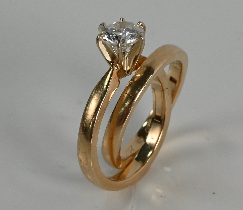 Lot 139B: 14 Karat Yellow Gold Engagement Ring, set with center brilliant cut diamond, approximately 1.2 carat, 6.57 mm, 8 grams total weight,…