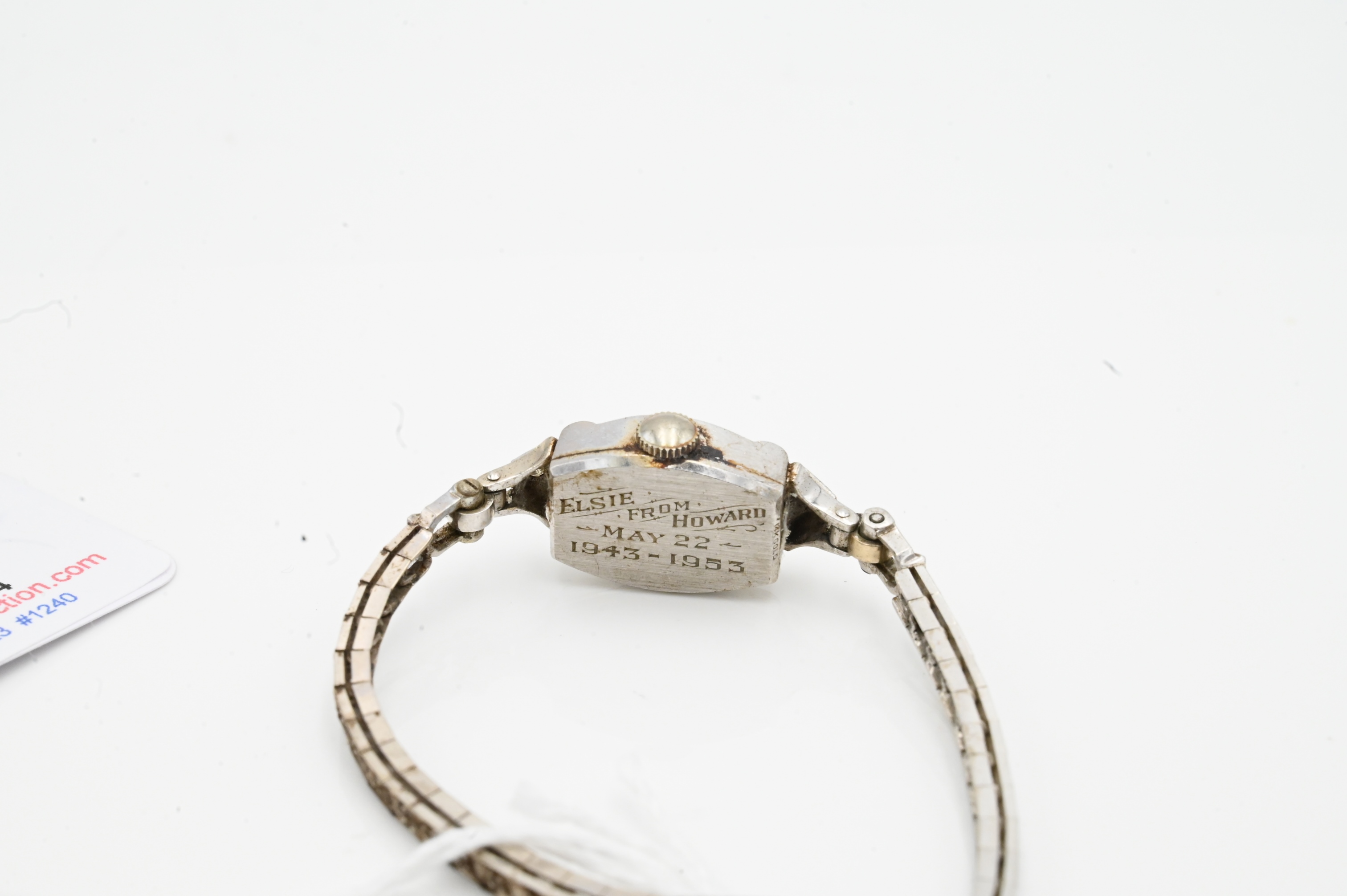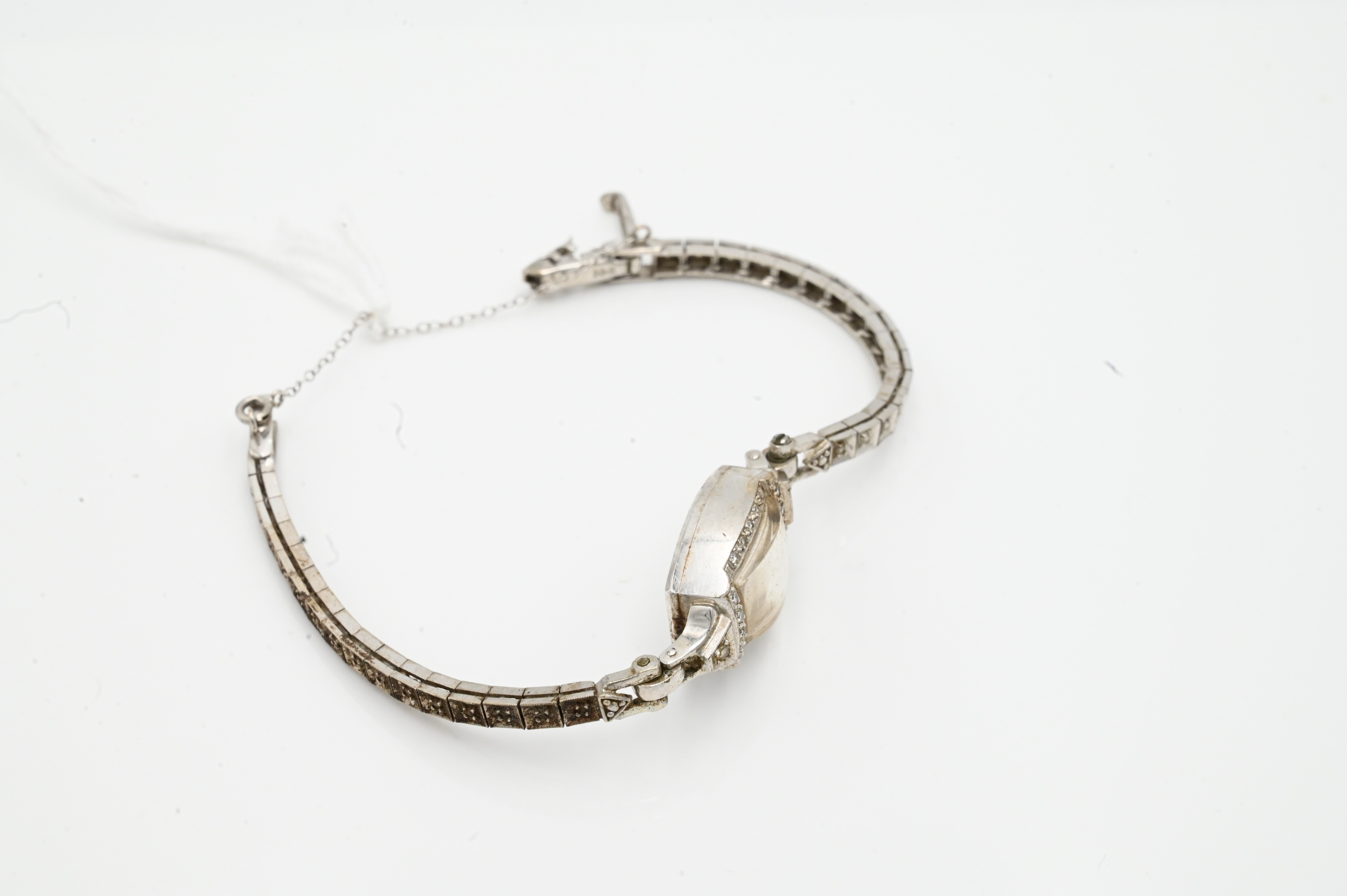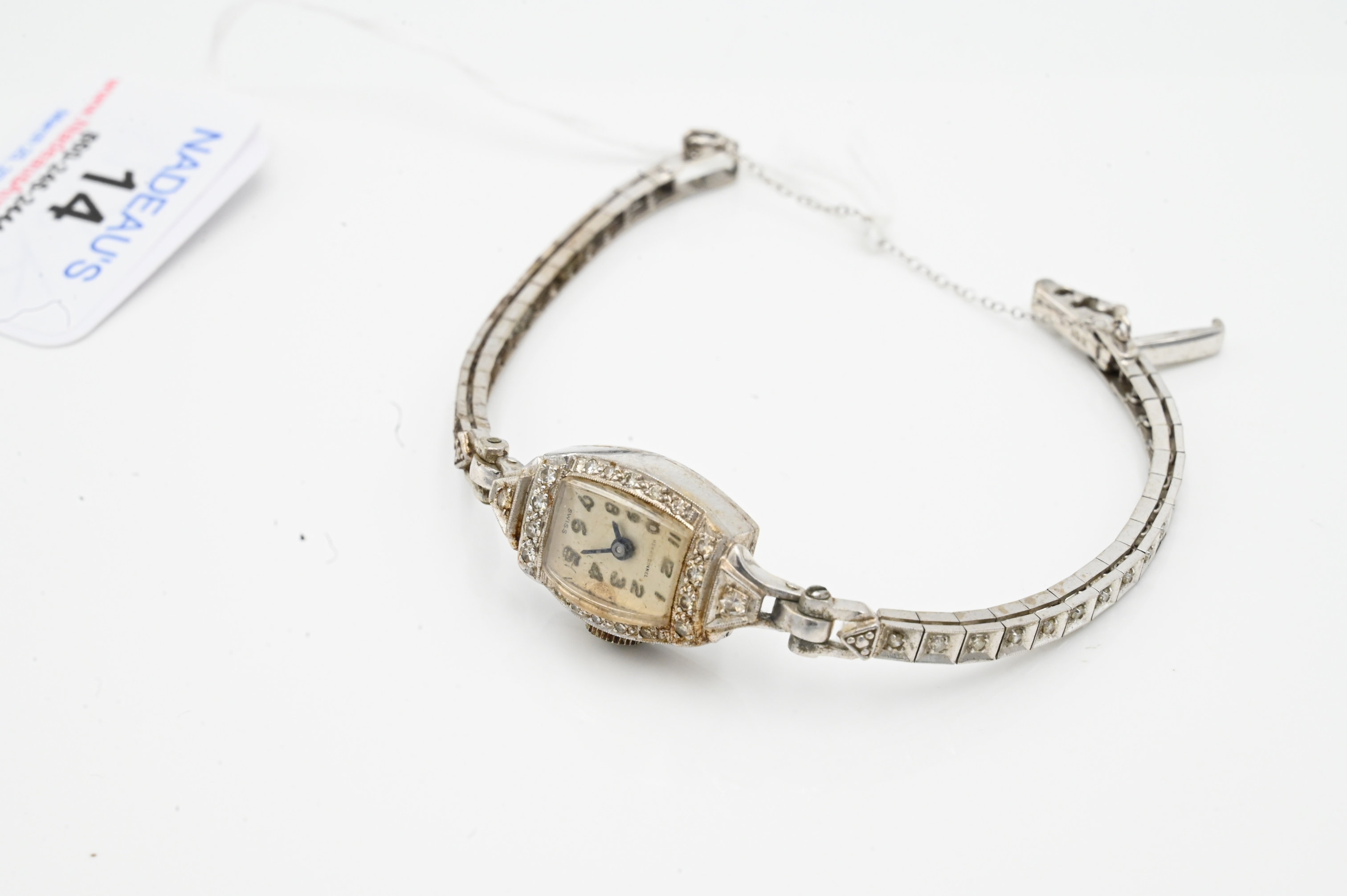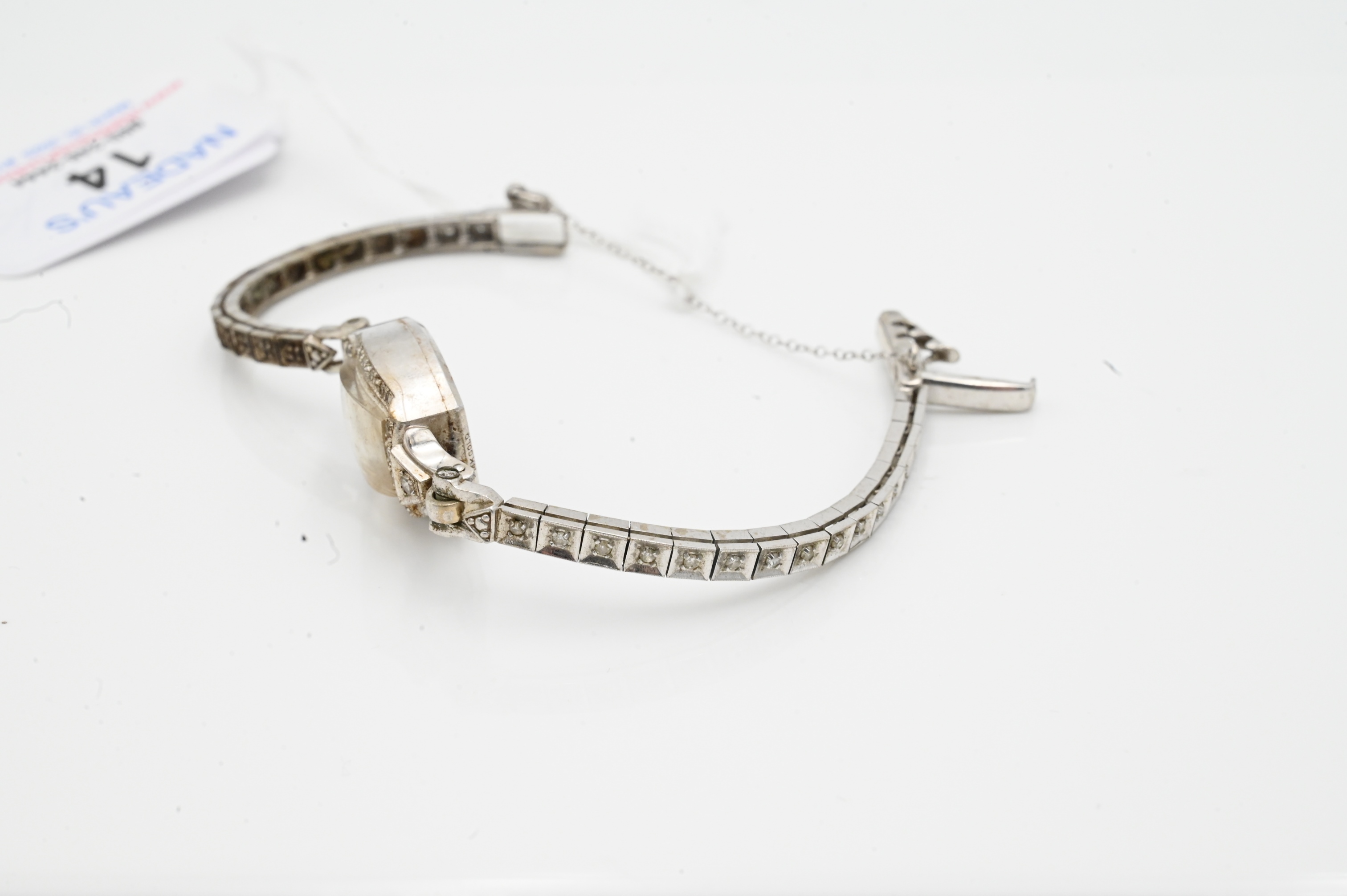 14 Karat White Gold Ladies Henry Ginnel Wristwatch, having small diamonds, length 7 inches, total weight 16.5 grams.