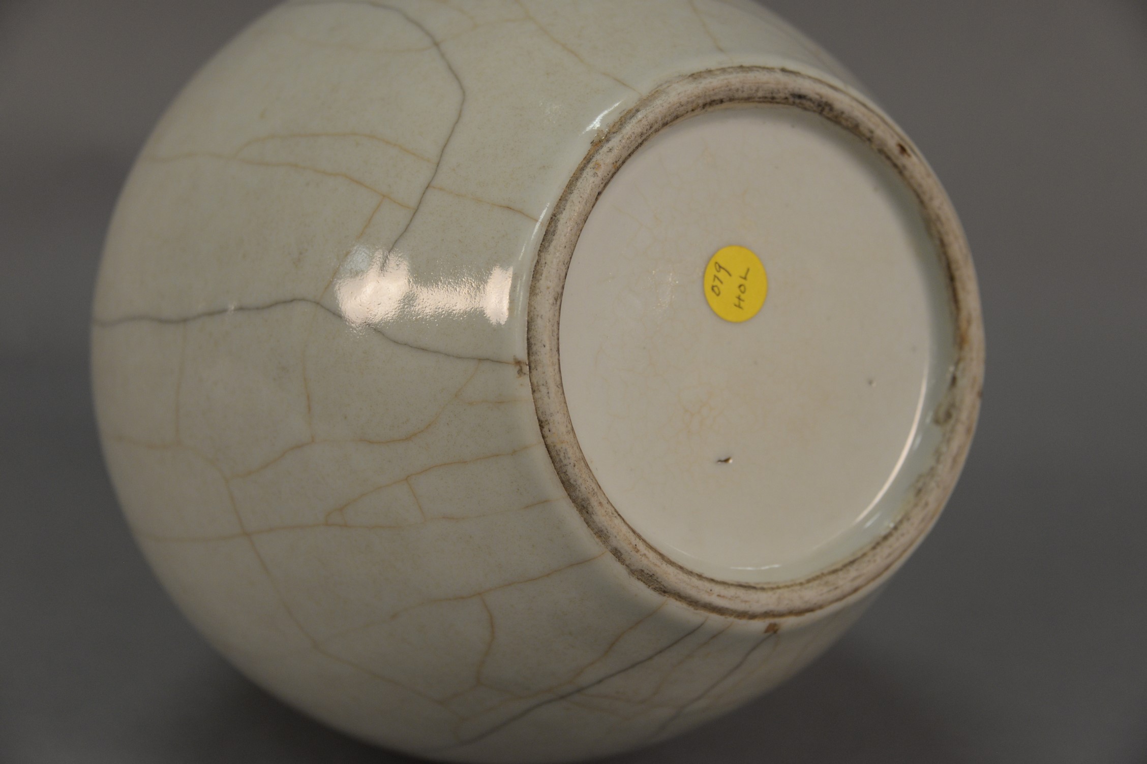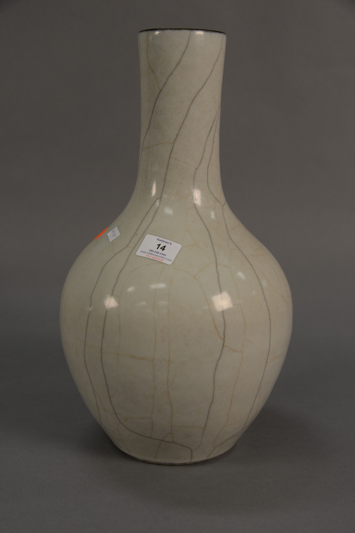 Lot 14: Chinese white crackle glazed globular vase having globular body and slender sleeve form neck. ht. 17 in.