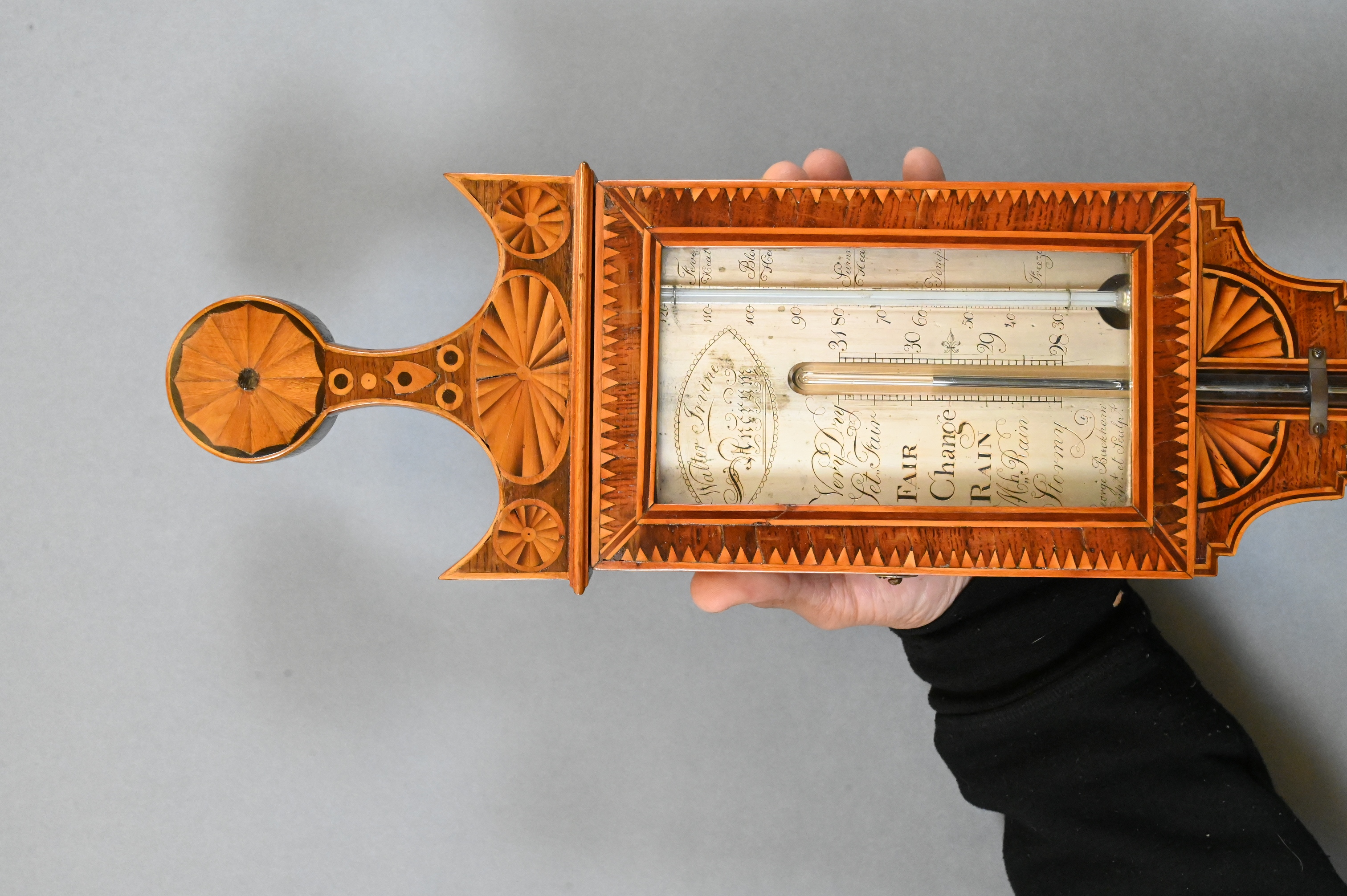 Lot 14: George III Inlaid Mahogany Stick Barometer
