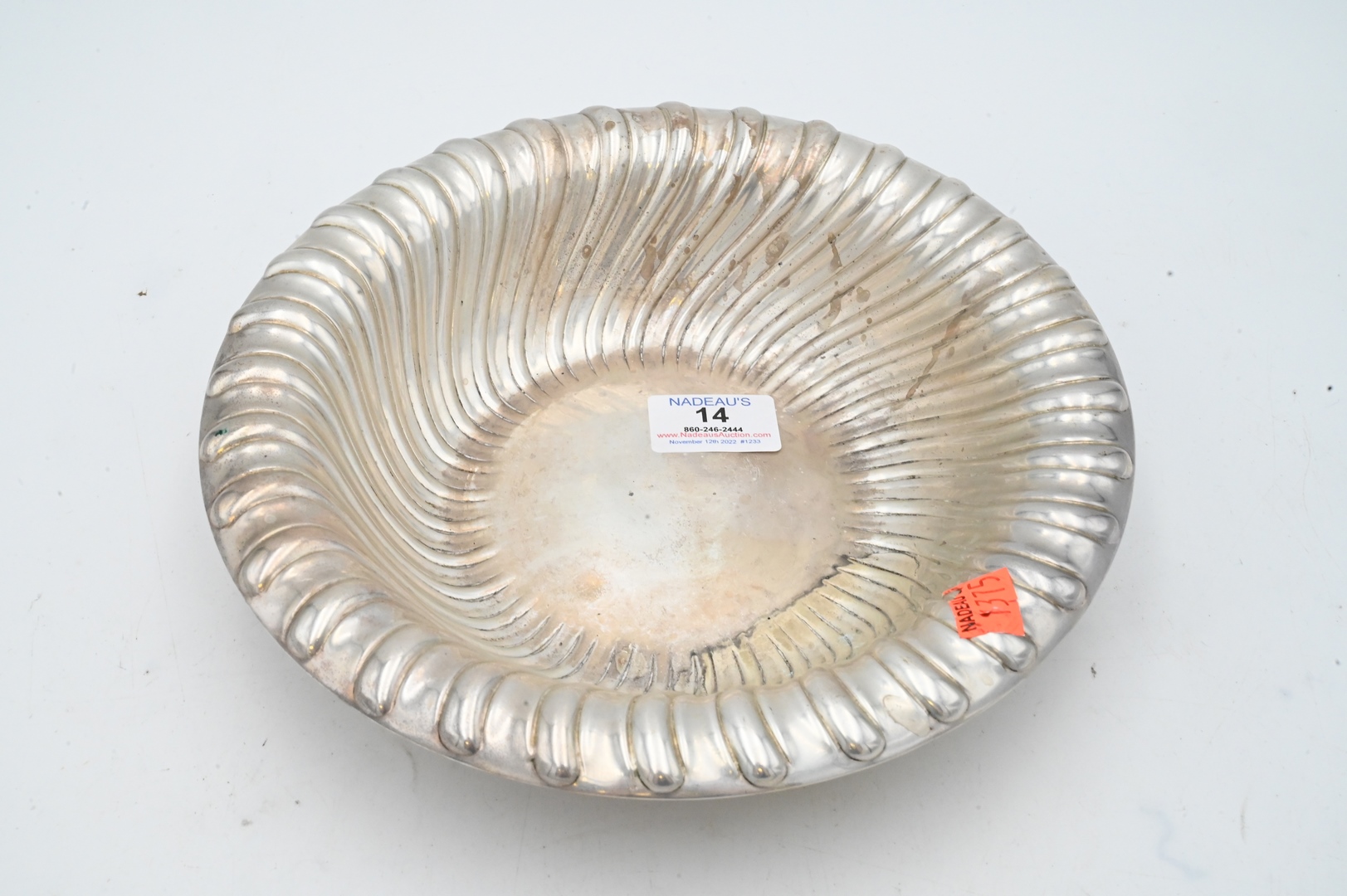 Gorham Sterling Silver Bowl, sold by J.E. Caldwell Sterling, diameter 10 inches, 20.7 t.oz, Provenance: Estate of Cyril H. Moore Jr, Kent, Connecticut.