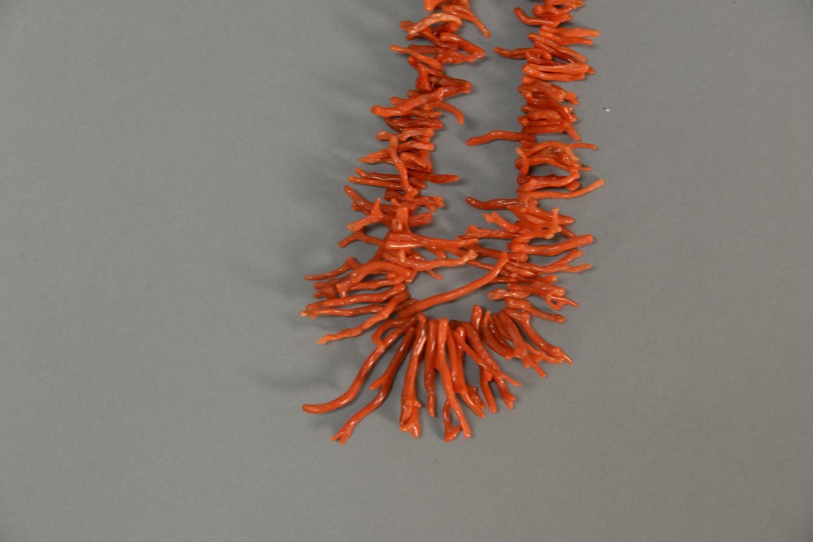Lot 14: Graduated red coral branch necklace. lg. 20in.