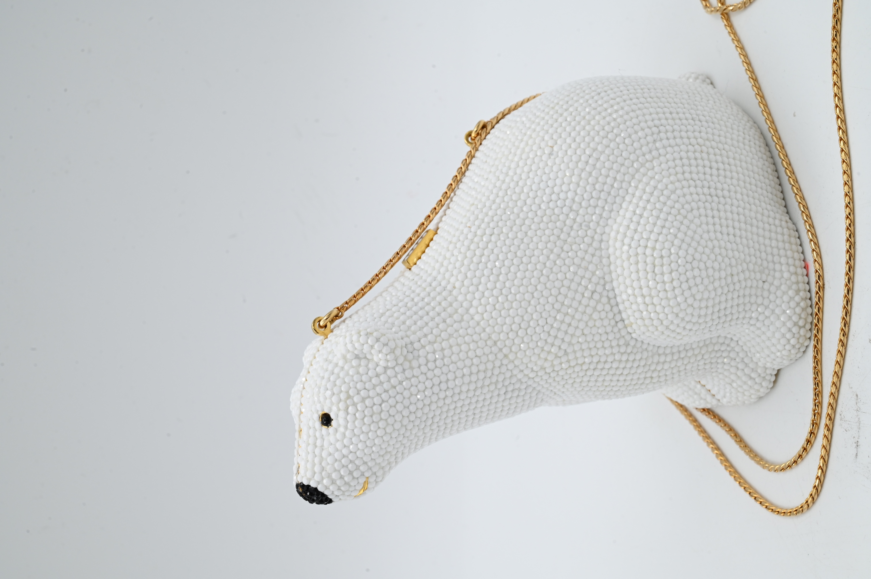 Lot 14: Judith Leiber Full Bead White and Black Crystal Polar Bear Minaudiere