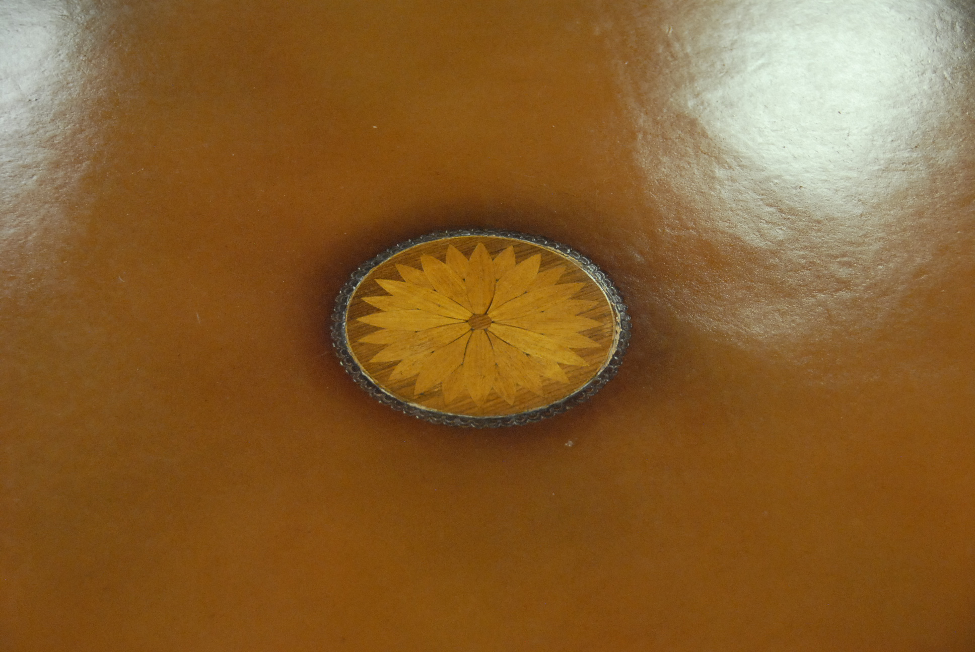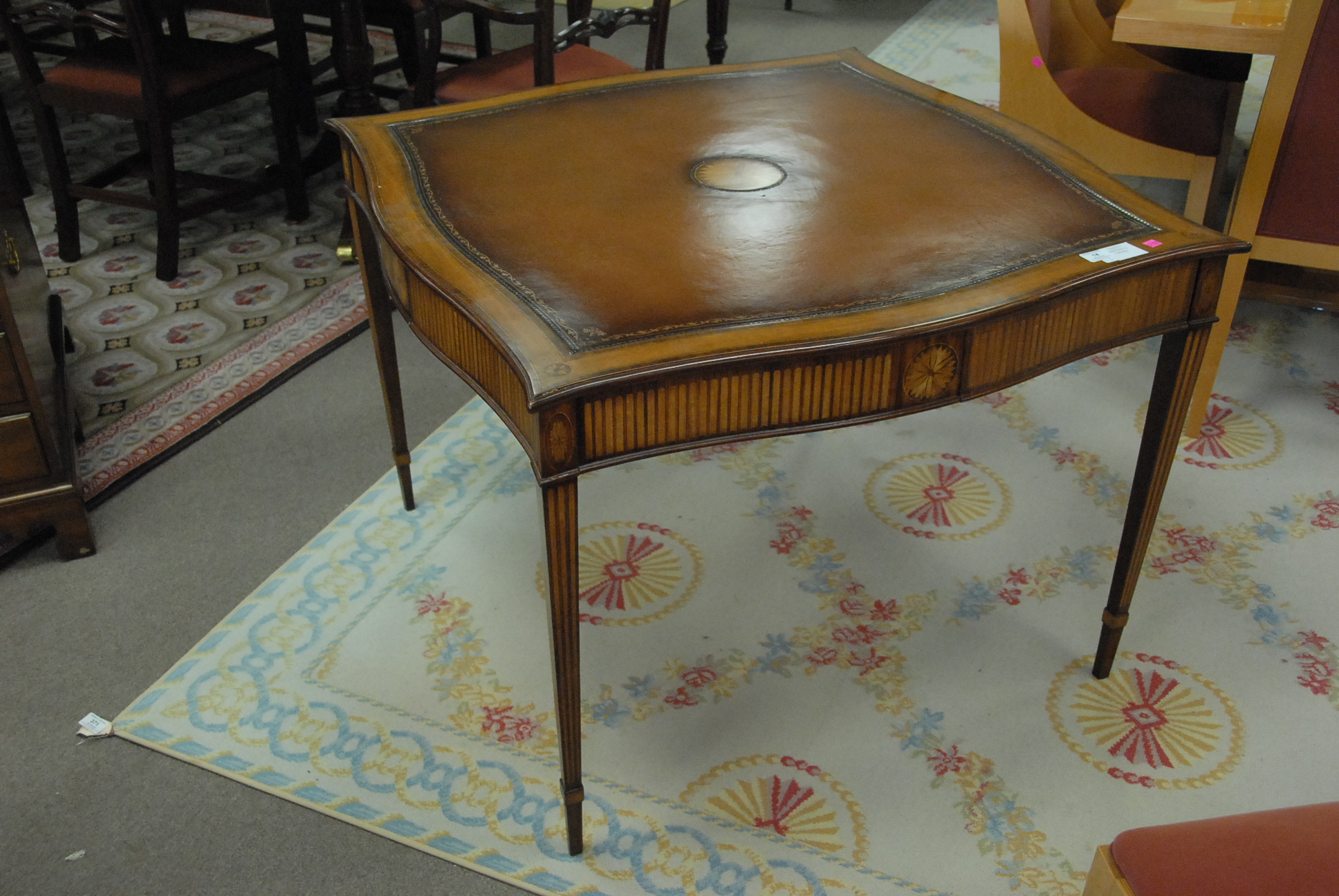 Lot 14: Maitland Smith game table with inlaid and leather top and four drawers, signed Maitland Smith, ht. 30 in. top: 41 x 41.