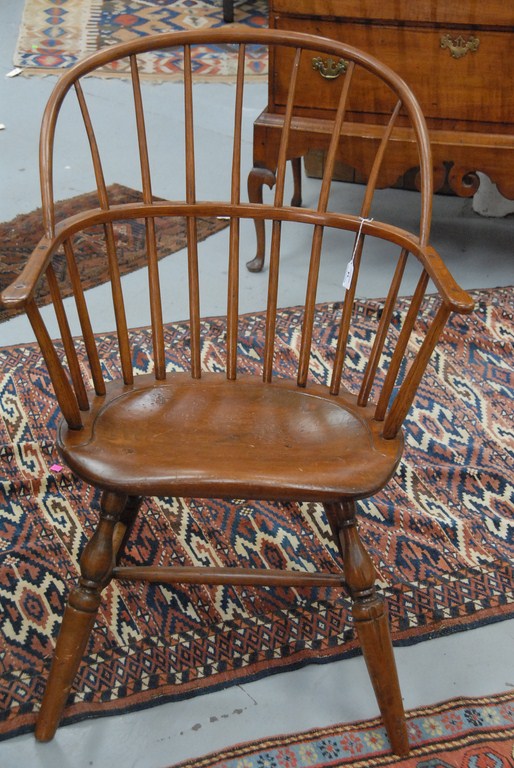 Windsor sack back armchair marked illegibly on bottom Capt. 1787. seat ht. 16in.