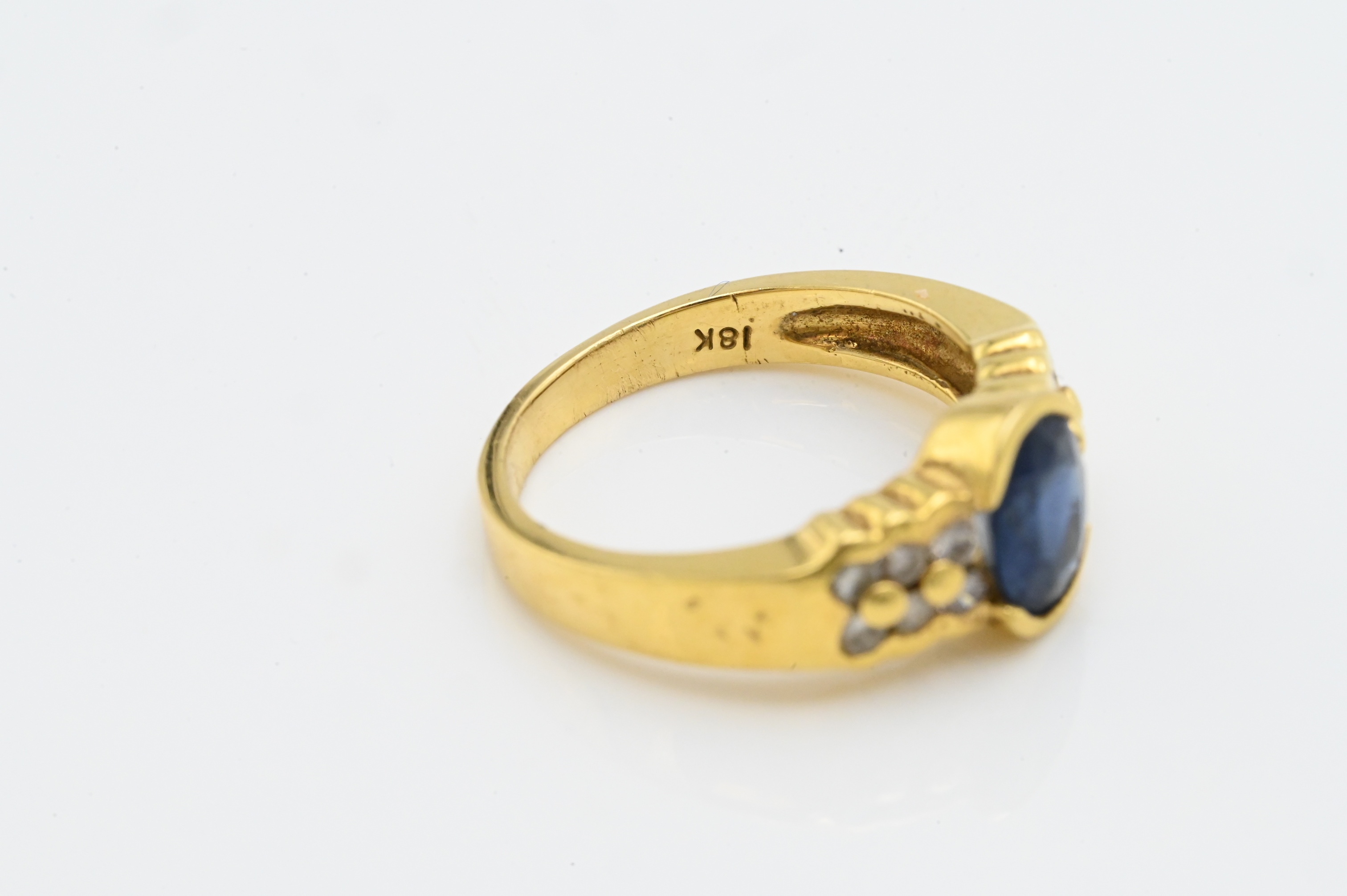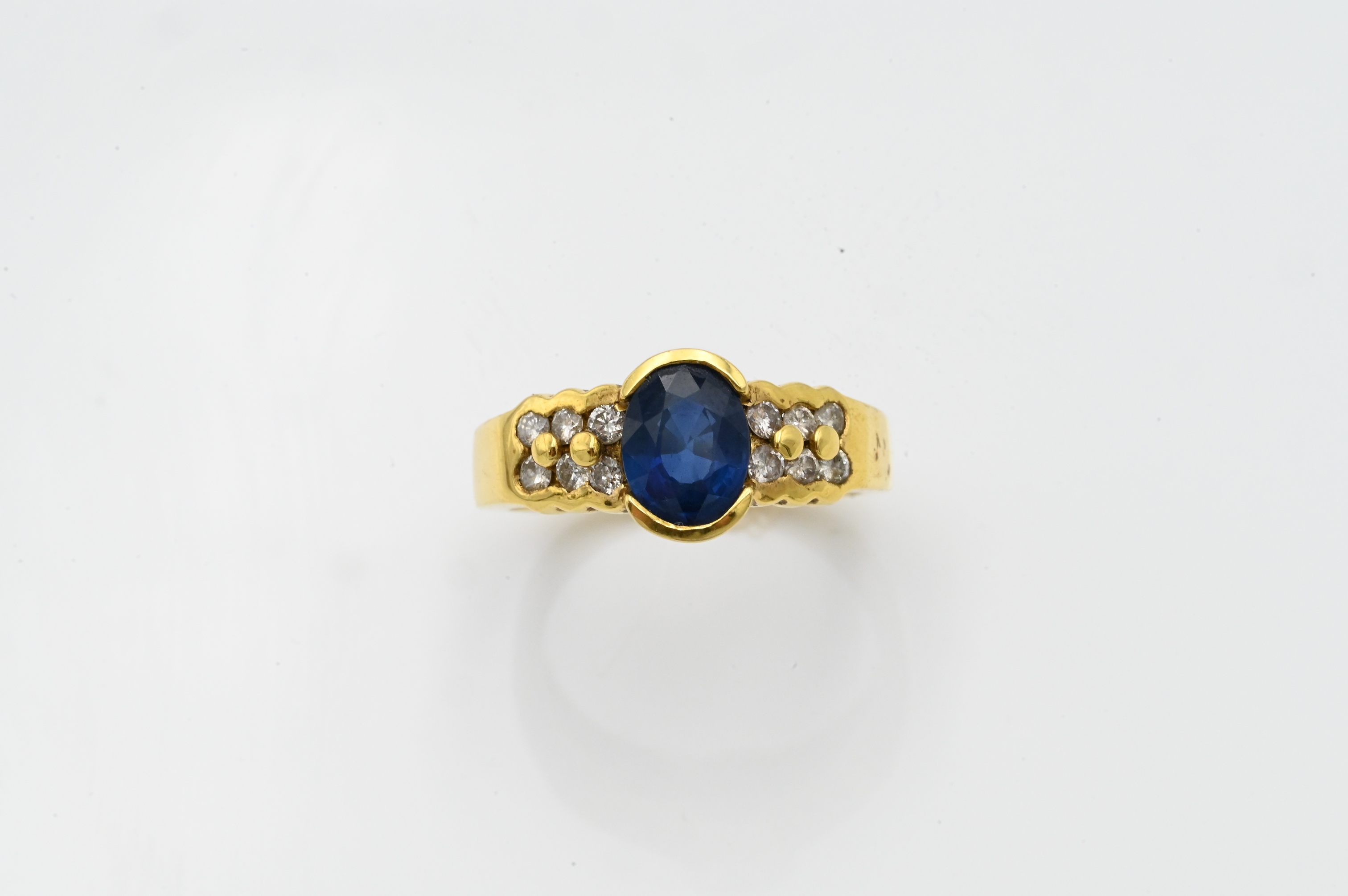 set with oval blue sapphire, along with small diamonds