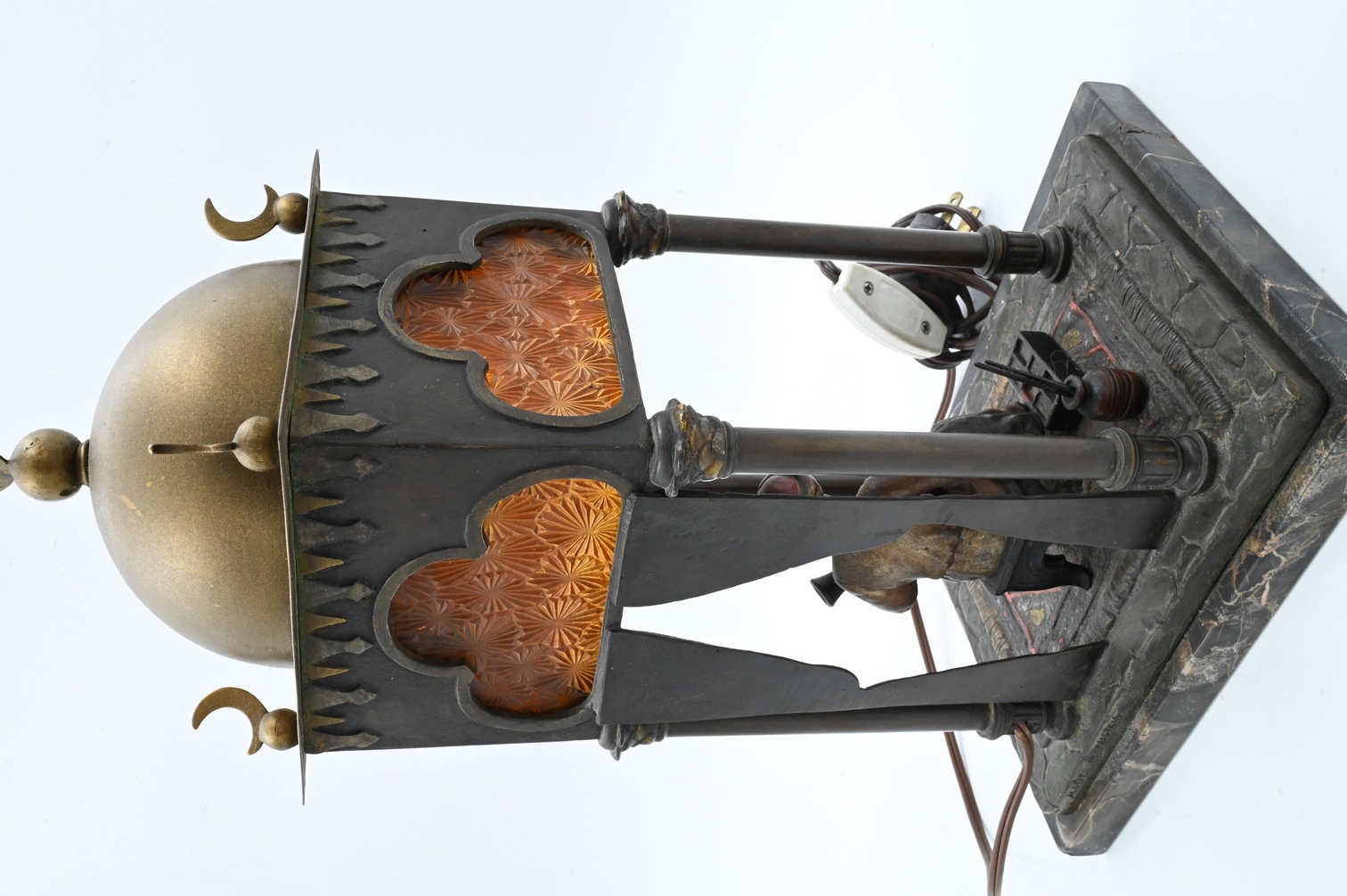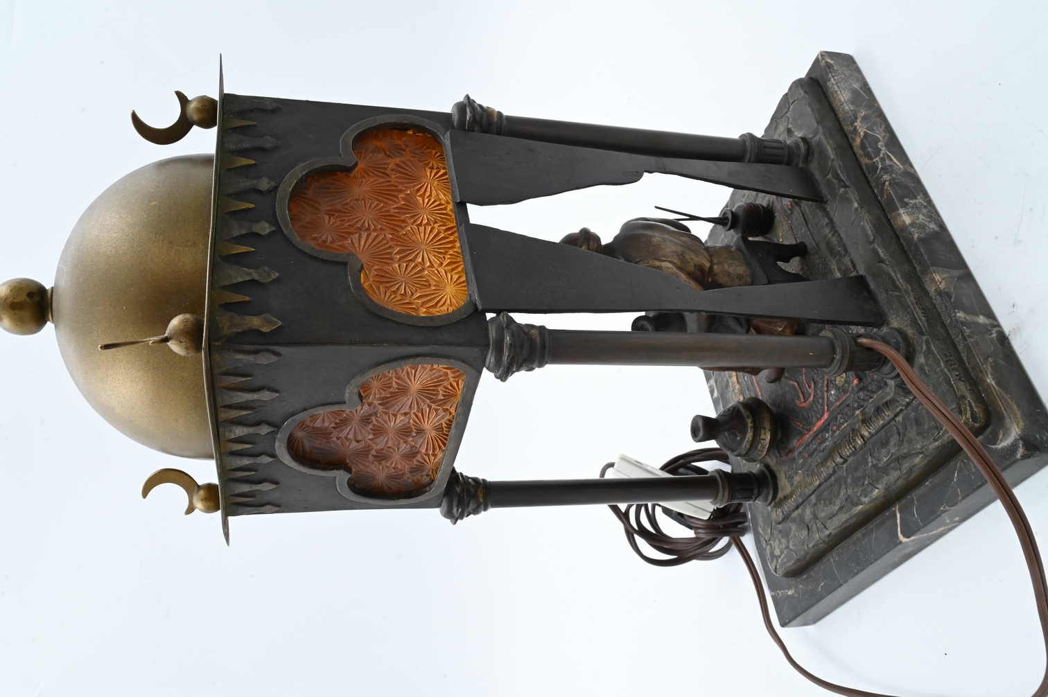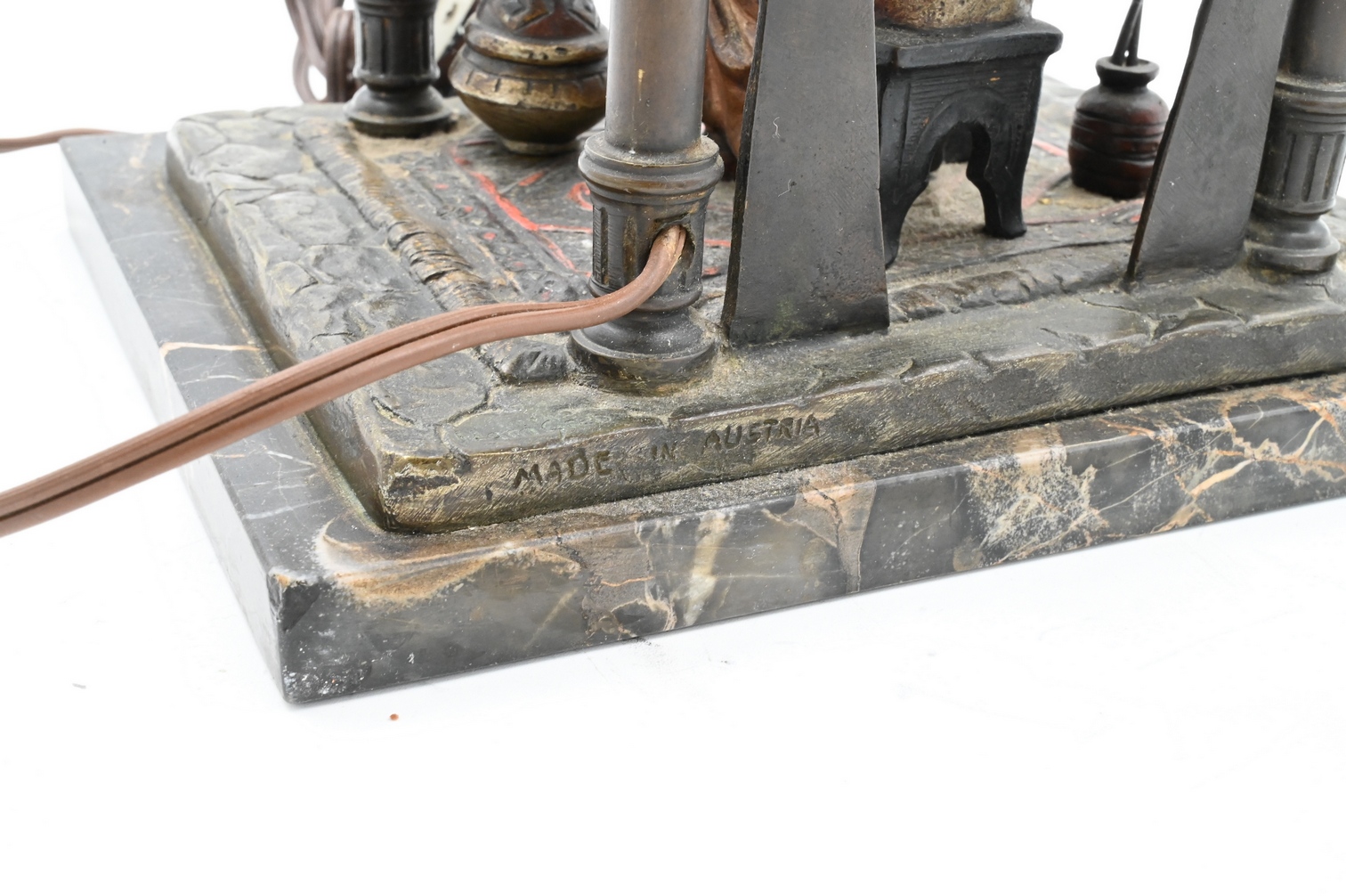 Austrian cold painted bronze table lamp of a bearded man painting vessels on marble base