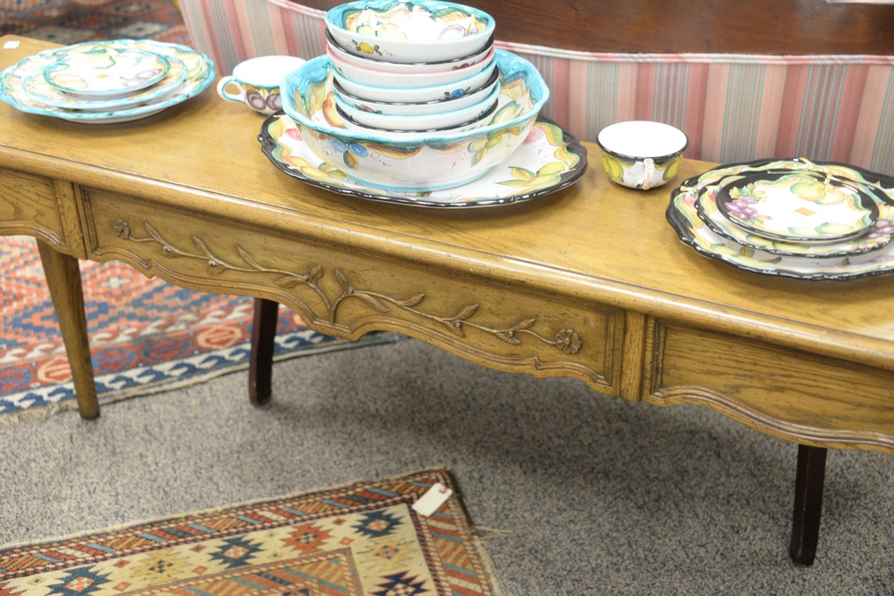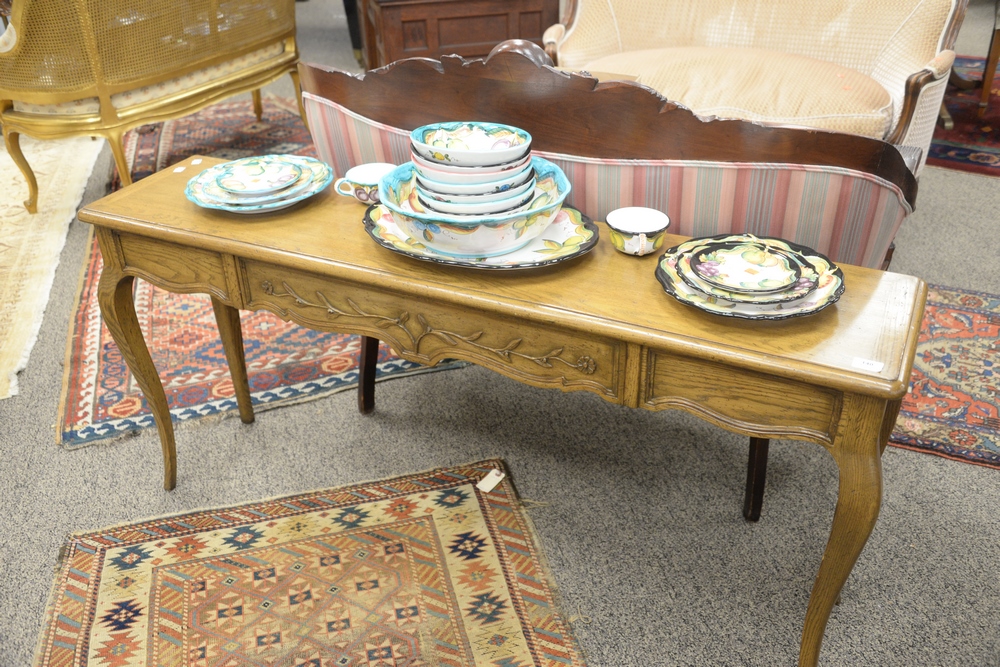 Auffray and Company French Style Hall Table, having one drawer with foliate motif raised on cabriole legs, height 27 3/4 inches, top 13 3/4″ x 60″.