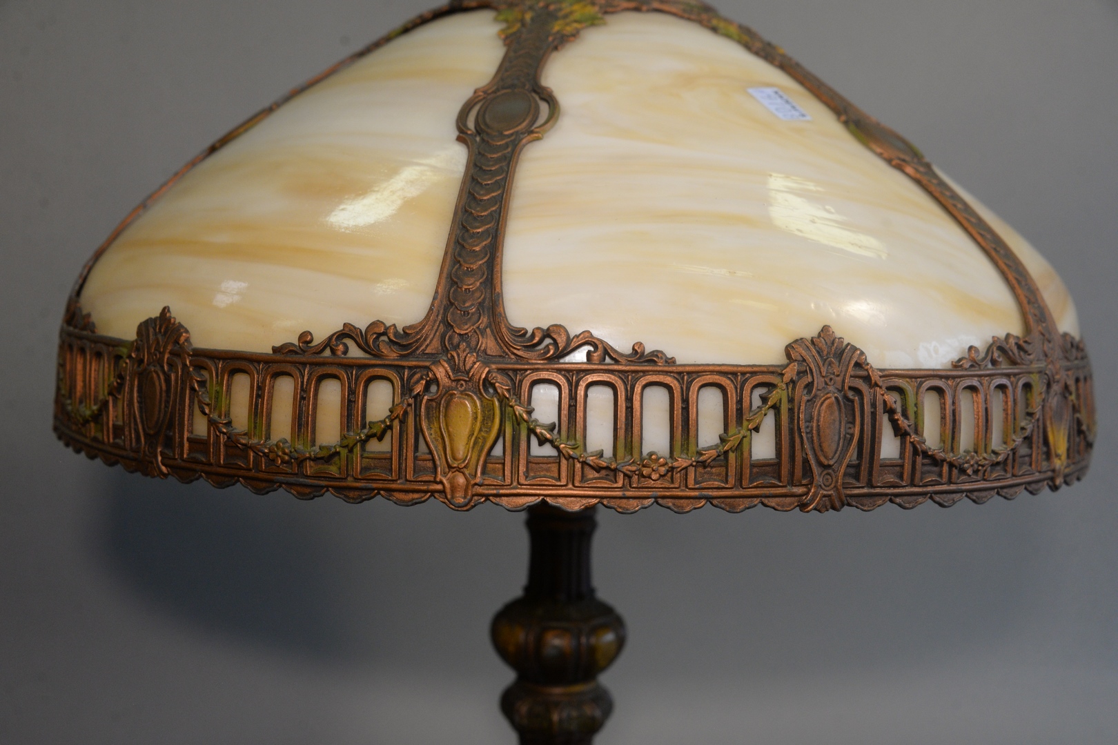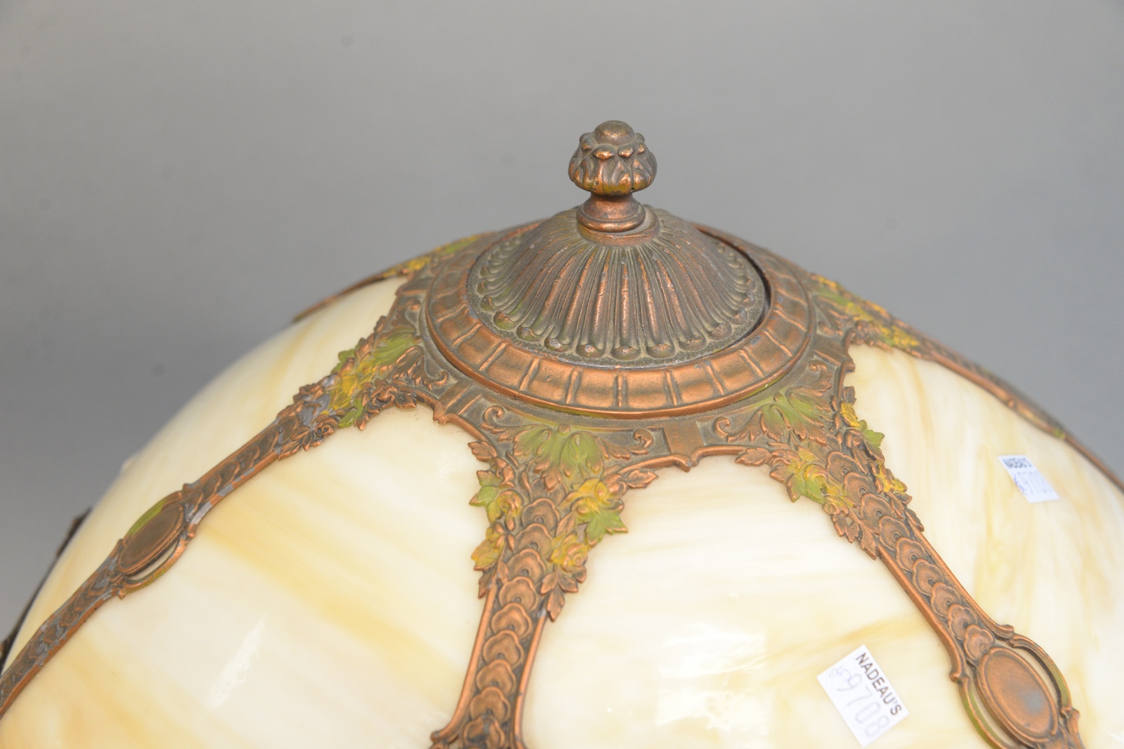 Lot 140: Caramel Slag Glass Table Top six panels height 21 inches, diameter 16 1/2 inches Provenance: Thirty-five year collection of Dana Coo…