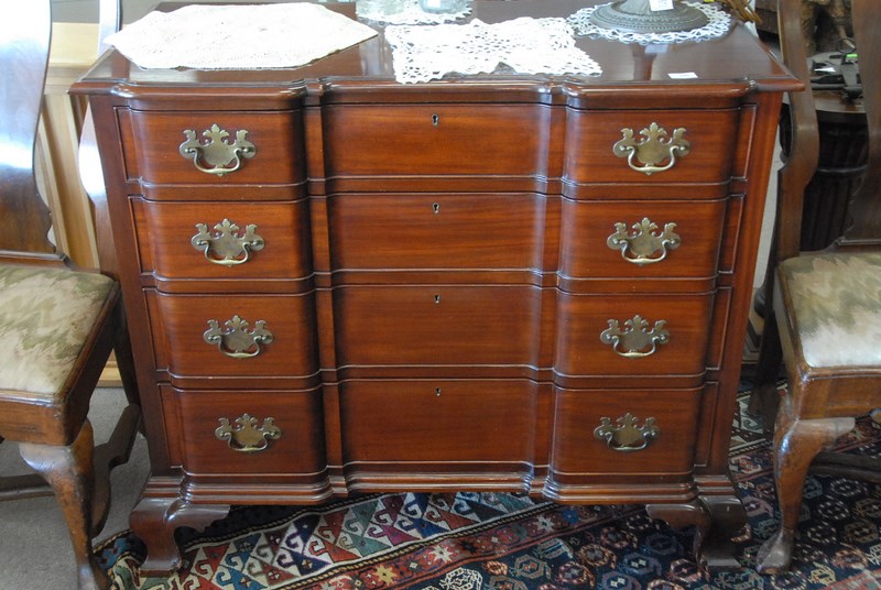 Custom mahogany block front four drawer chest. ht. 36 1/2in. wd. 42 1/2in.