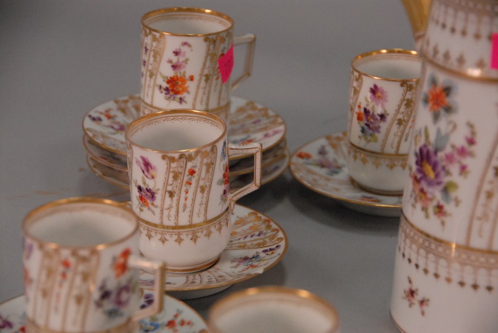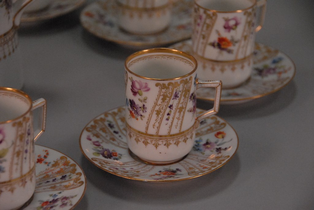 Dresden twenty-one piece tea set to include 10 cups, 12 saucers, and one teapot.