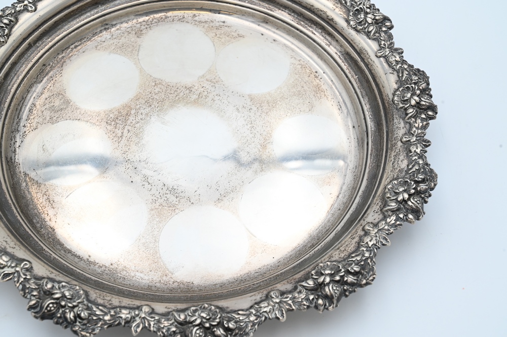 Mauser Sterling Silver Round Tray, with floral border, diameter 13 1/8 inches, 28.3 t.oz. Provenance: An estate from Redding, CT.