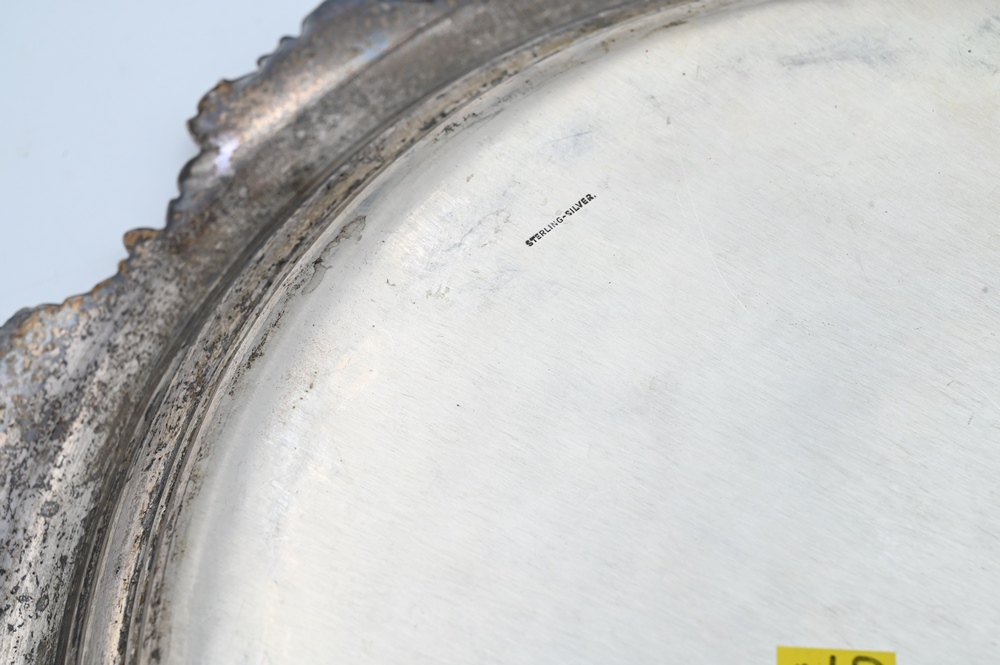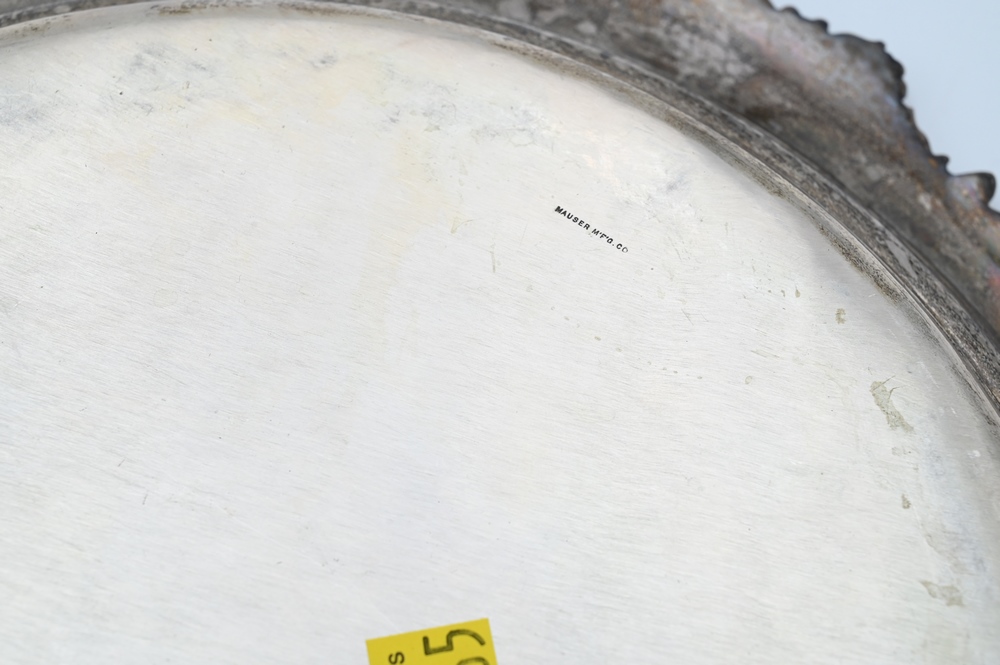 Lot 140: Mauser Sterling Silver Round Tray, with floral border, diameter 13 1/8 inches, 28.3 t.oz. Provenance: An estate from Redding, CT.