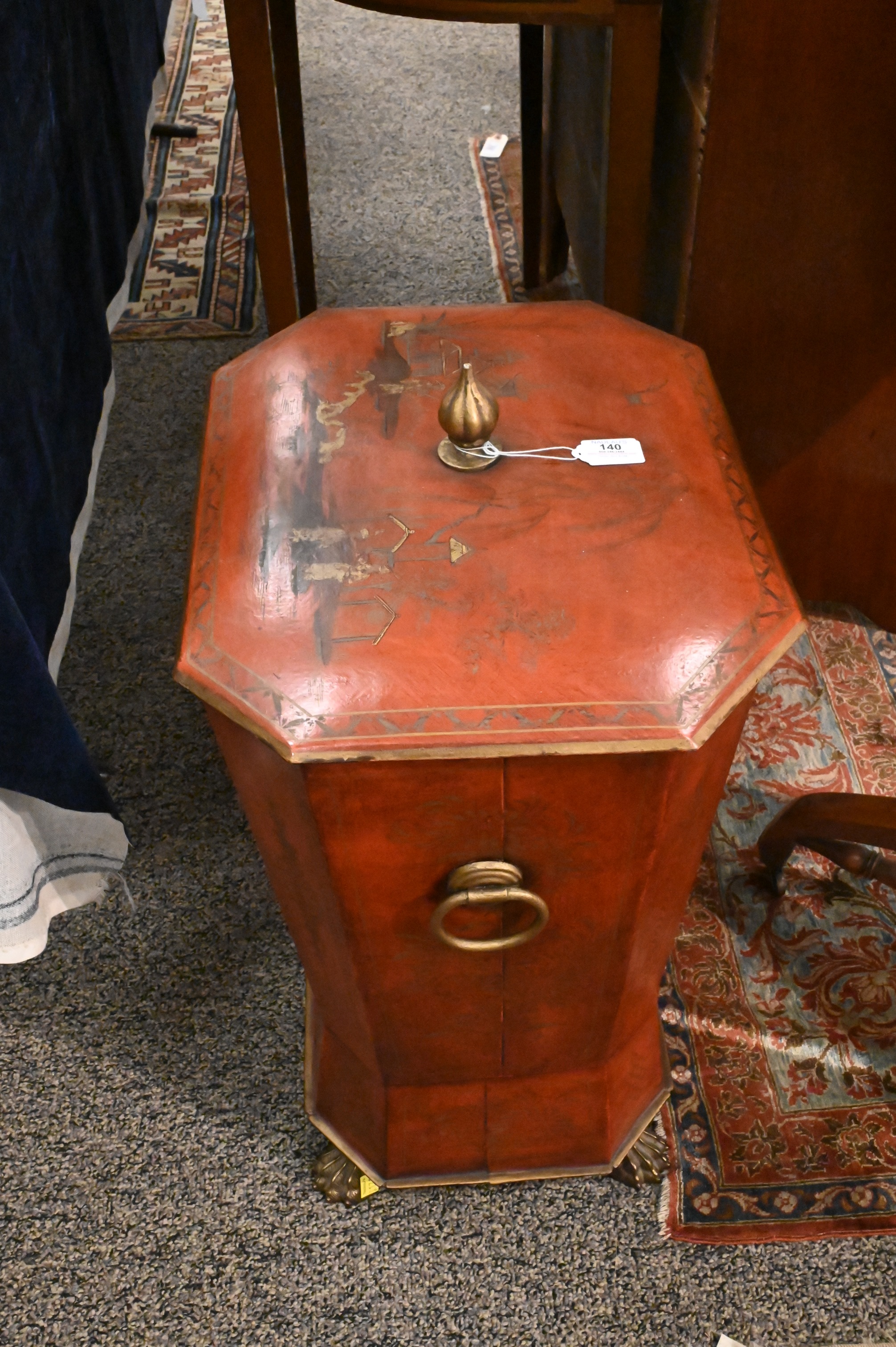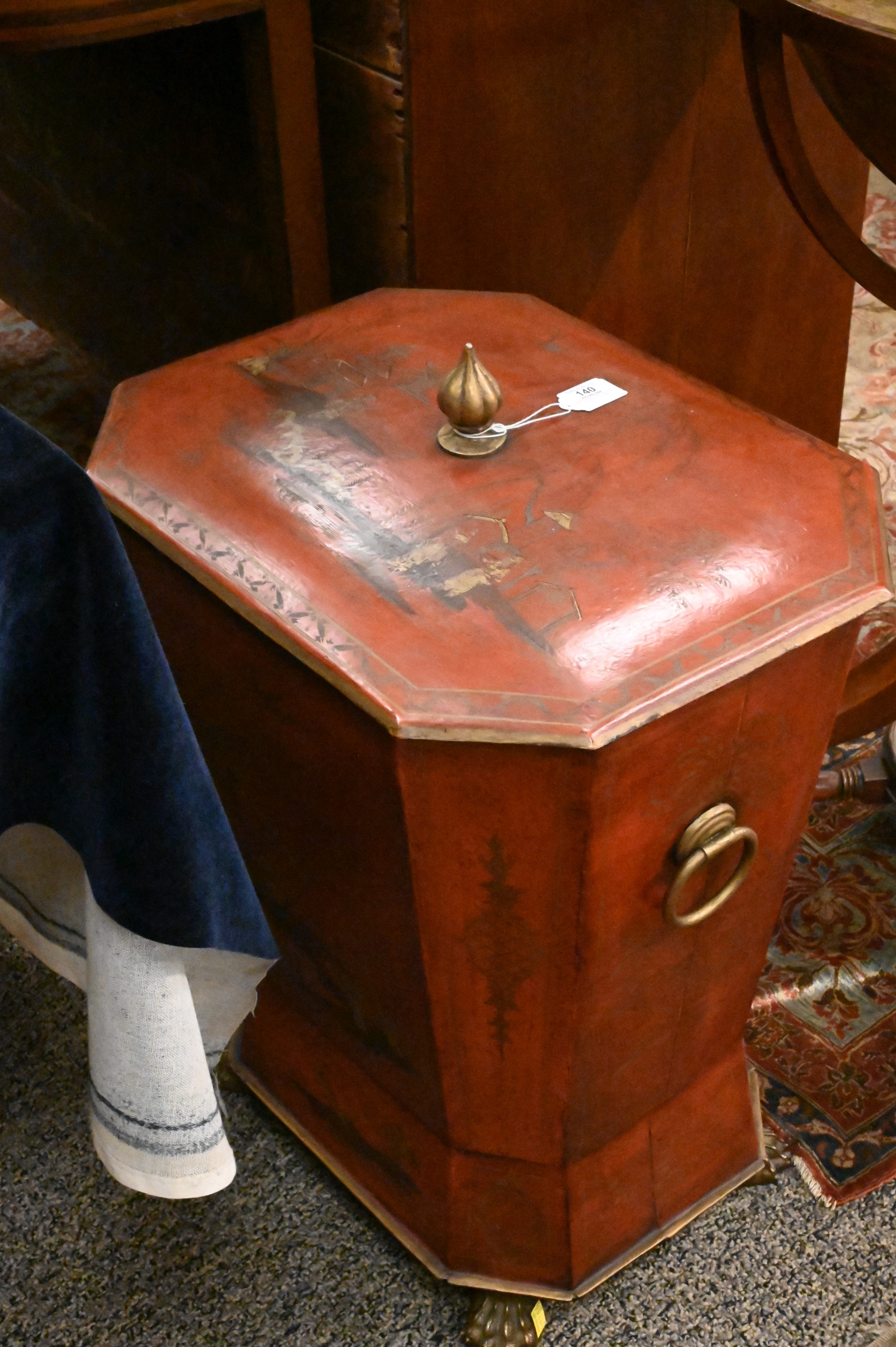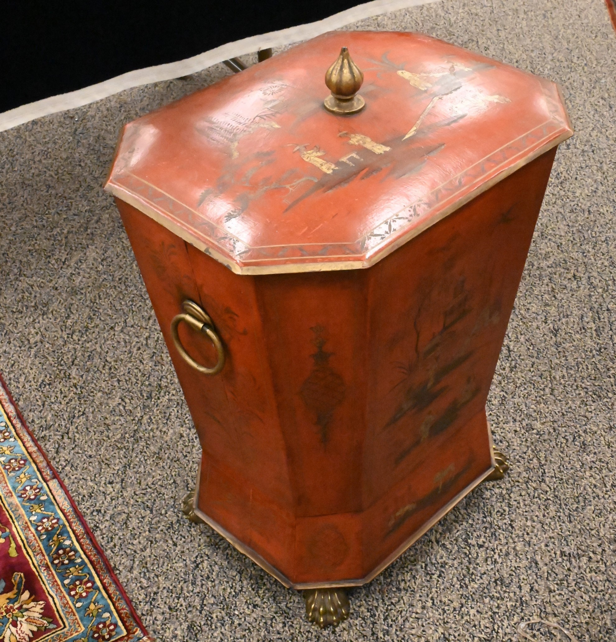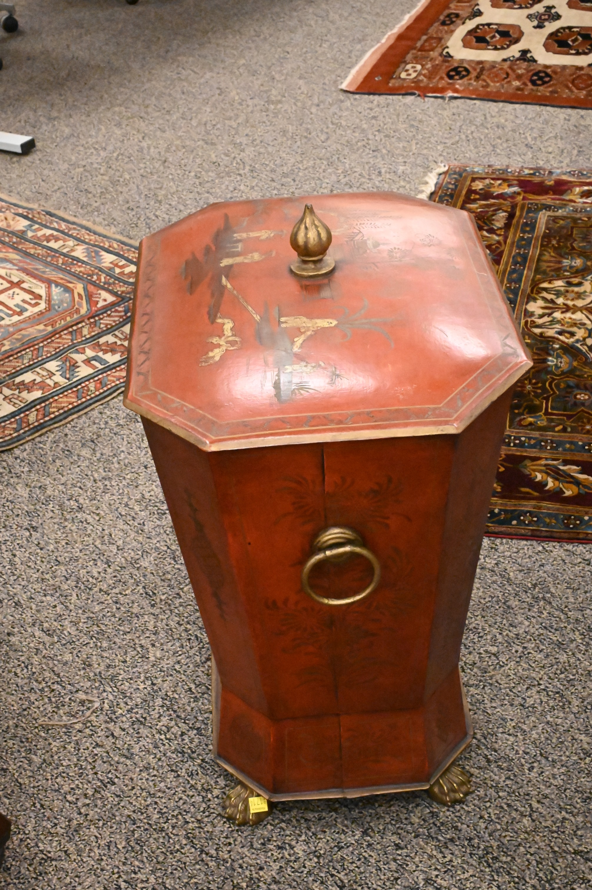Lot 140: Pair of Regency Chinoiserie Decorated Tole Coal Bins