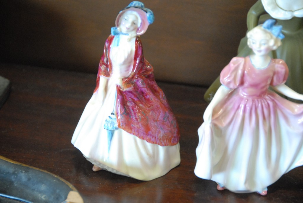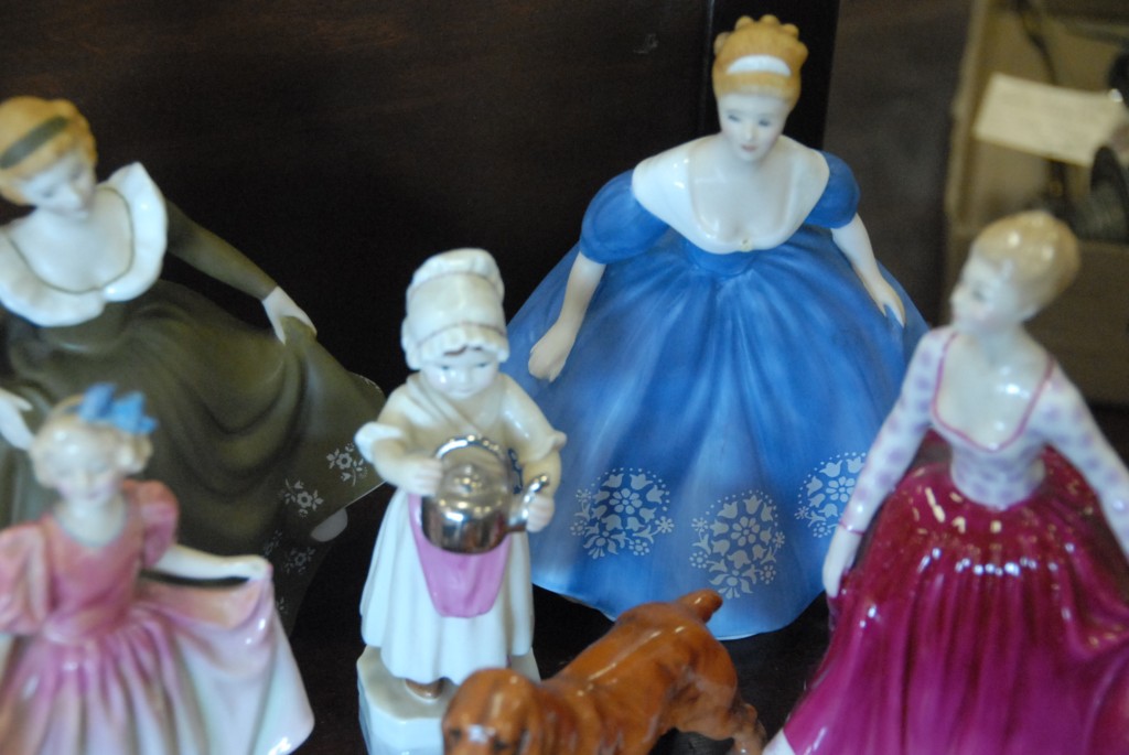 Seven piece lot six Royal Doulton figures and one Royal Worcester figure.