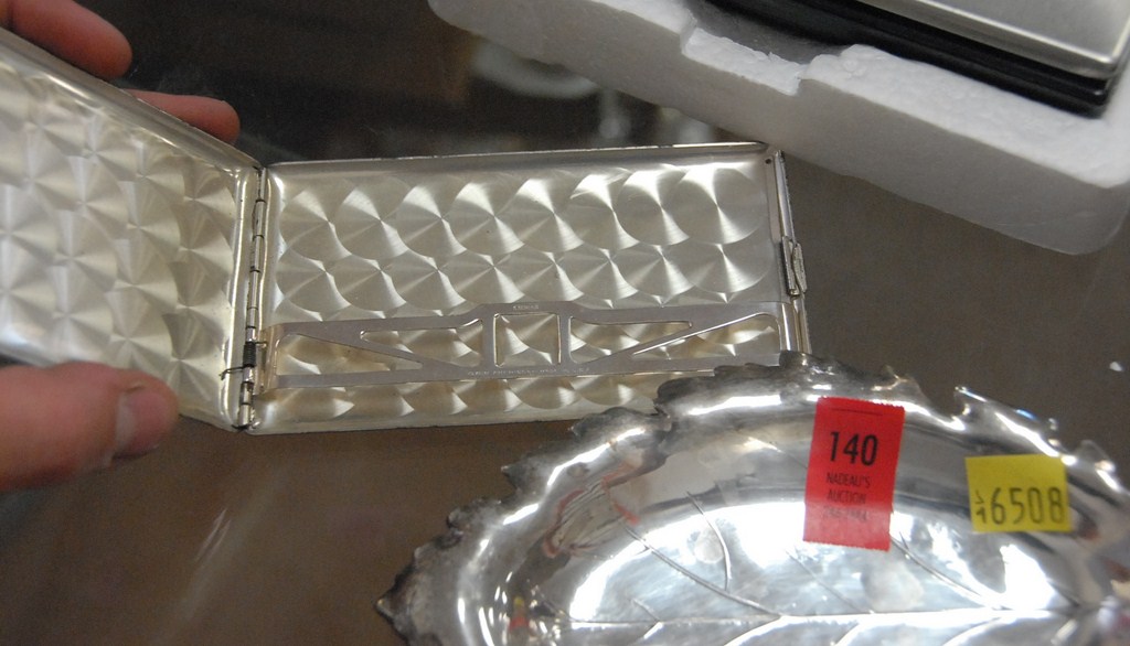 Sterling compact and sterling silver leaf dish, 6.62 t oz. Provenance: property from a home in Rockville Center, New York which was decorated by Iris Apfel.