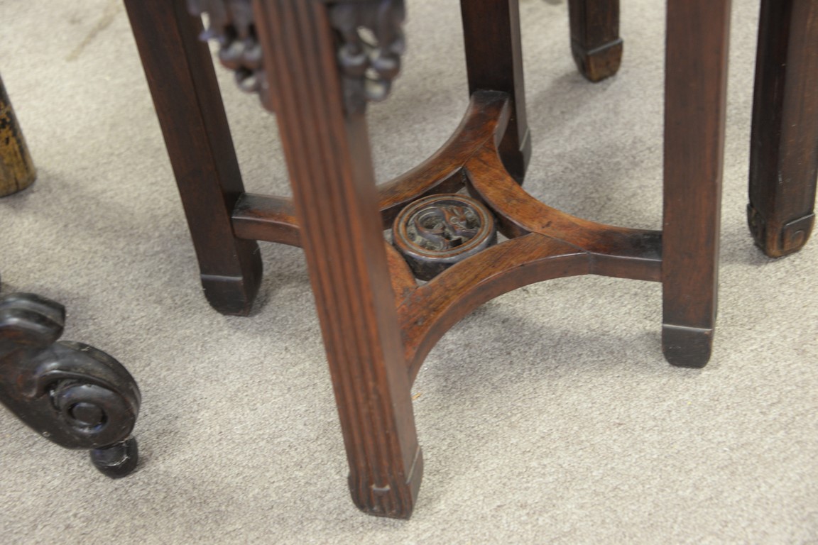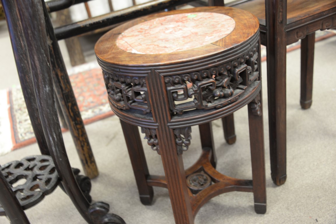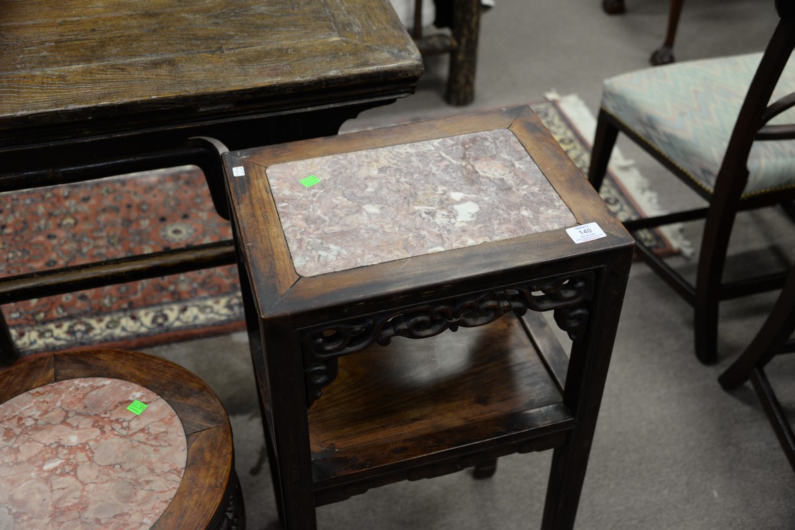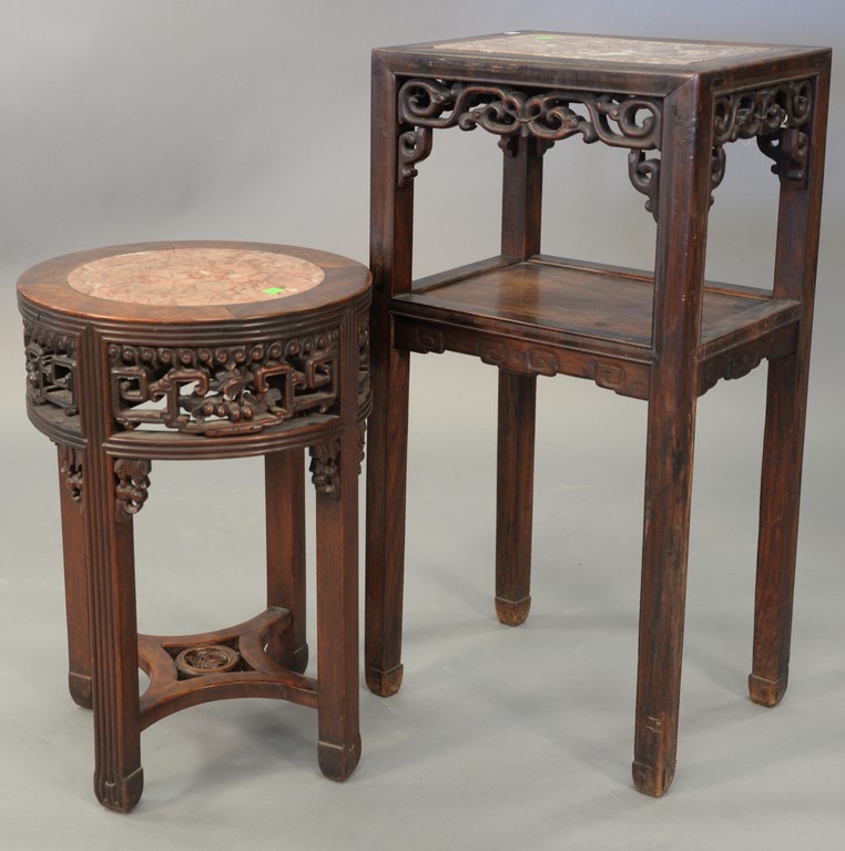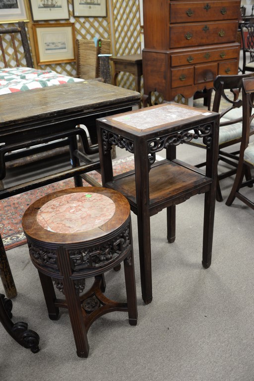 Two Chinese stands, one round and one square. ht. 31in., and ht. 31in., top: 12 x 6