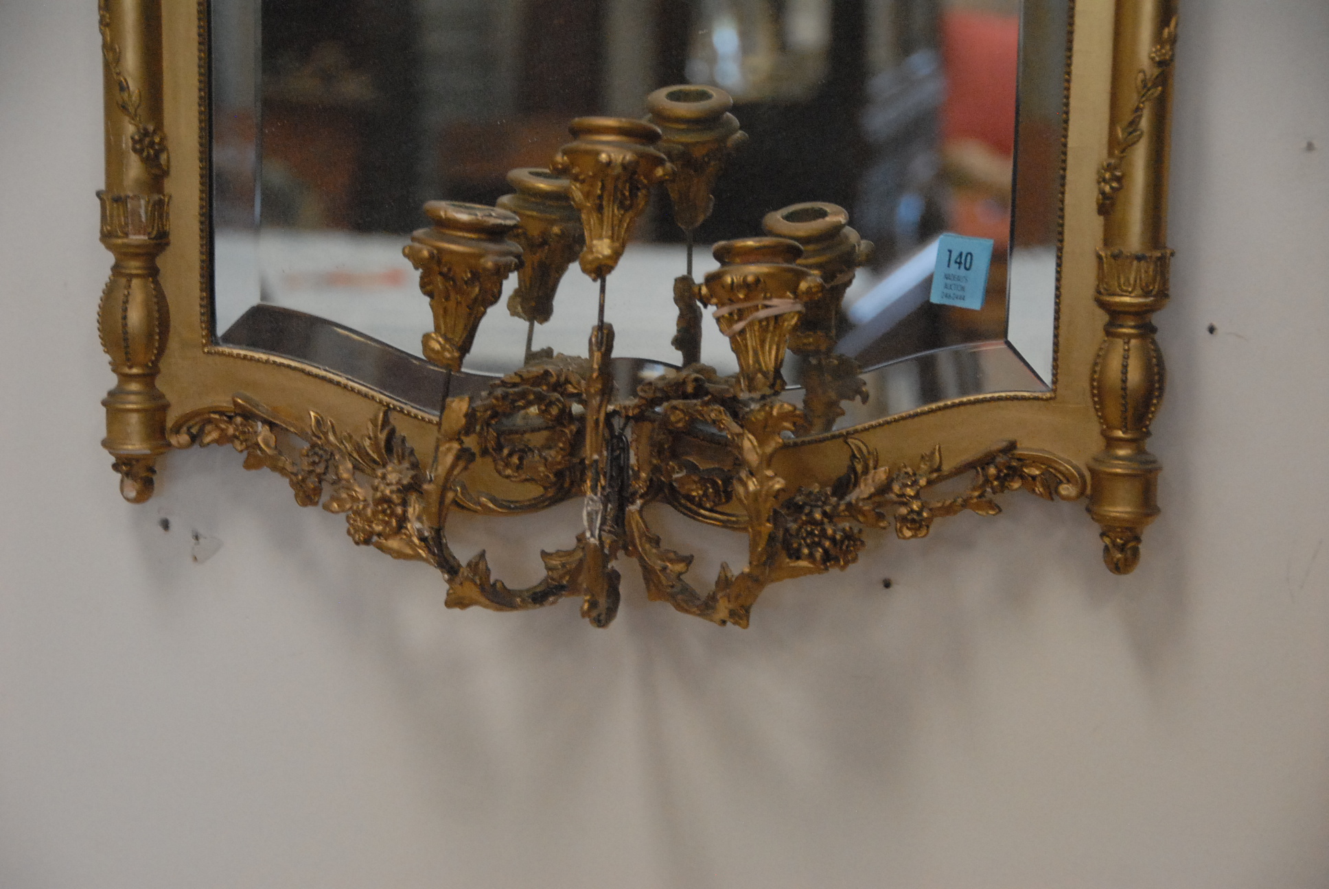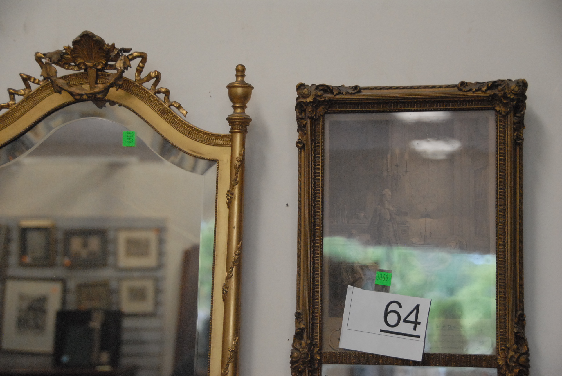 Two mirrors mounted with three candle holders, minor chips, ht. 29in. & ht. 45in.