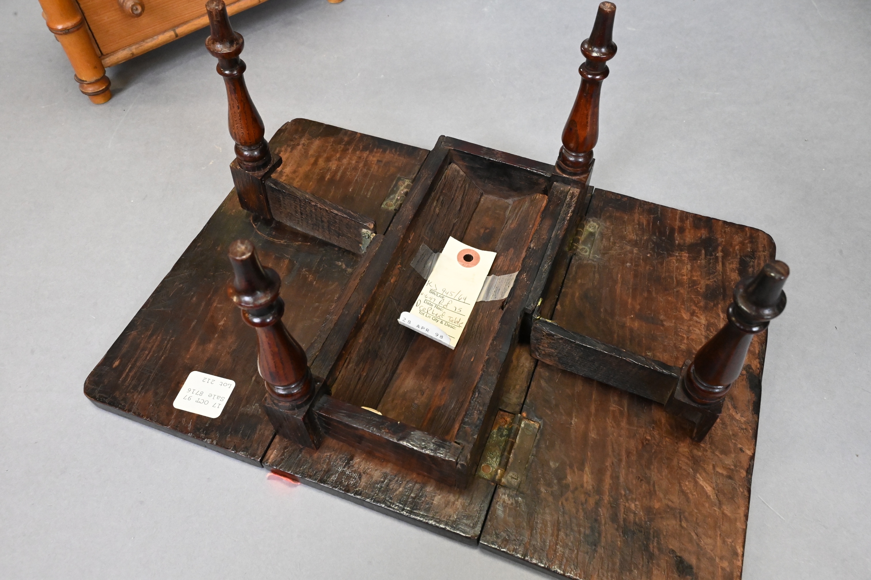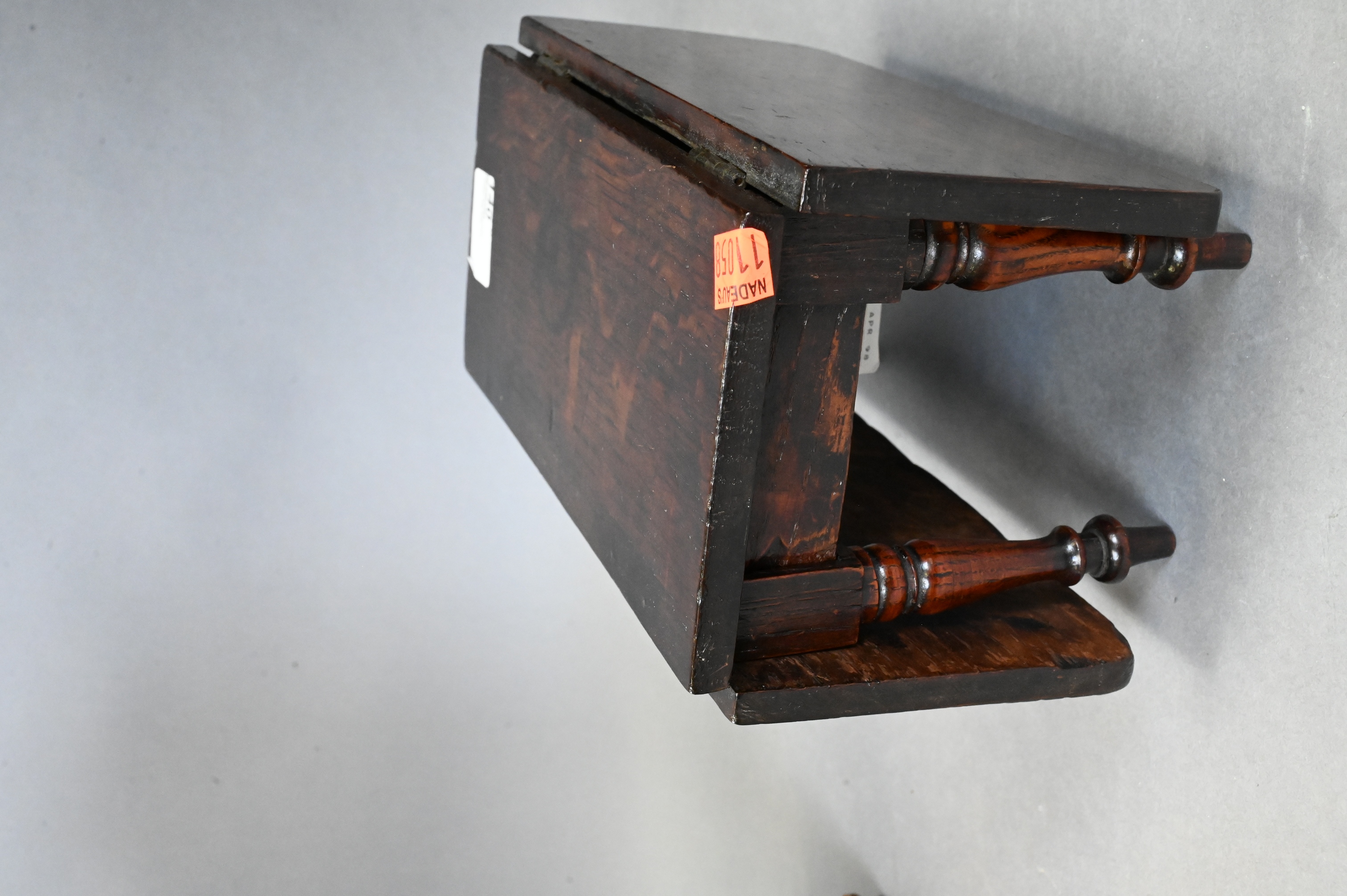 George III miniature elm drop leaf table having rectangular top with rounded rectangular flaps over baluster-turned tapering legs, 19th century, height 6 inches, top length 14 inches